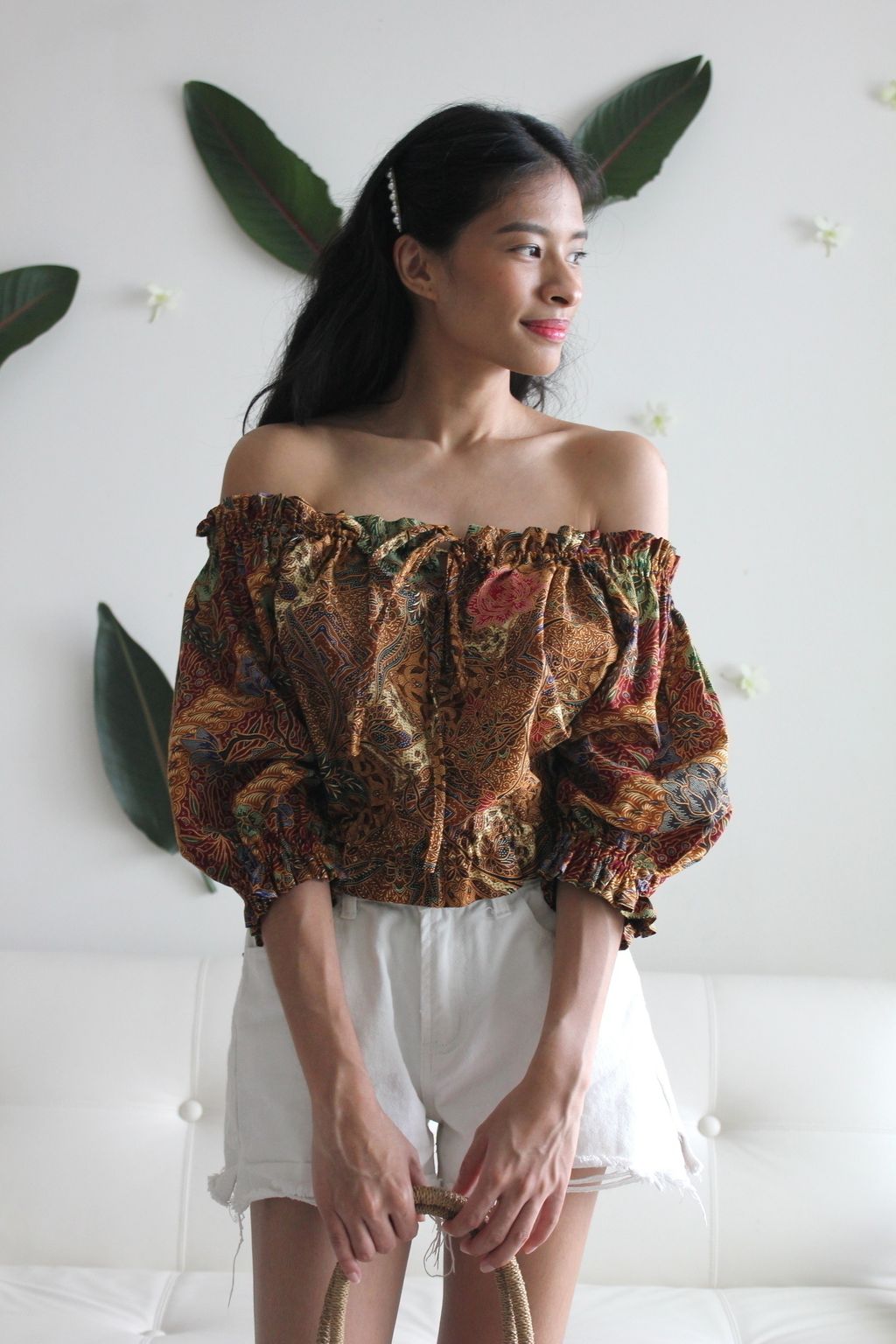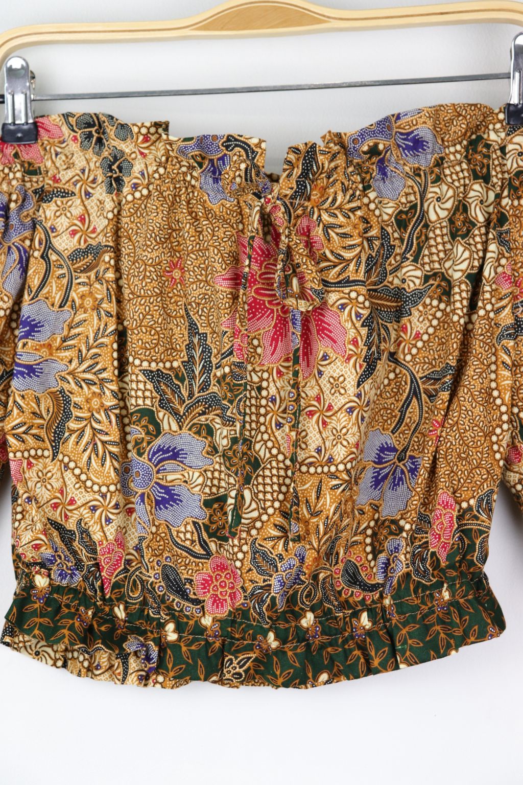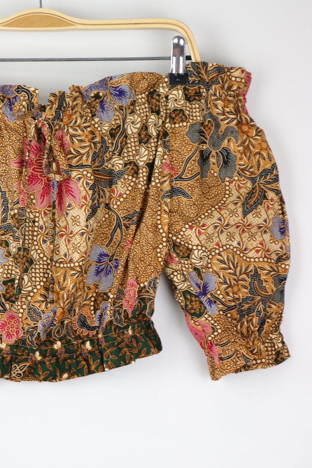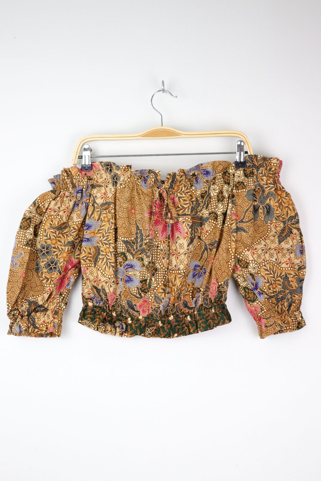 Off-Shoulder Batik Blouse - Wheatgrass
