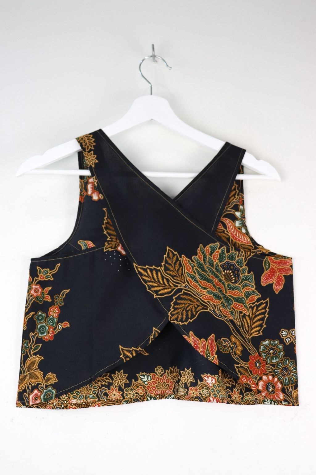 Previously called the Napkin top. We have decided to update the current models name to the crossback top ! The cut of this top is slightly different from the previous versions with added dart and a sleeker form.