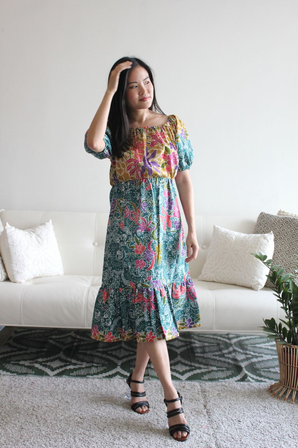 The batik dress you can just throw on, feeling gorgeous on a day out. Comfortable with a feminine silhouette that niche at the waist. Has pockets at both sides and will fit a size s - m well! Only one made of each print :)