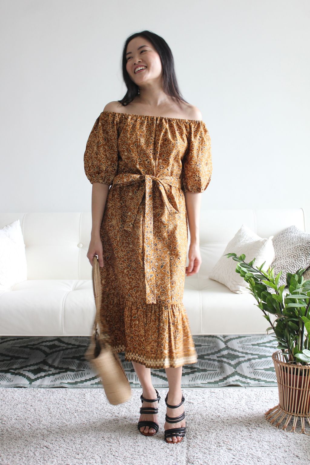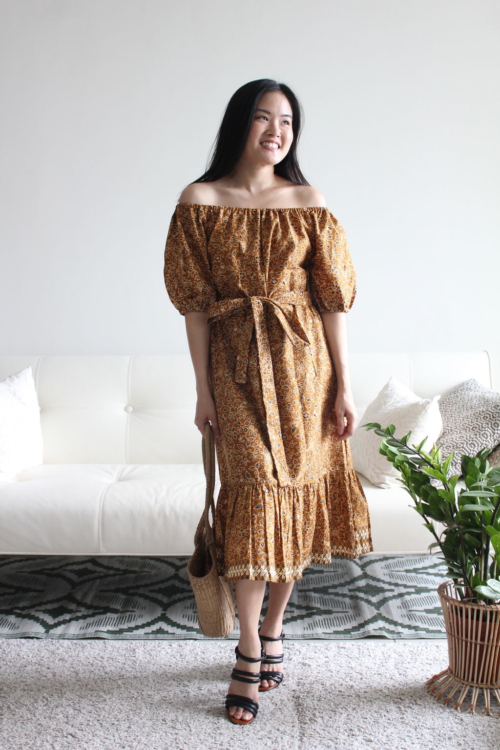 The batik dress you can just throw on, feeling gorgeous on a day out. Comfortable with a feminine silhouette that niche at the waist. Has pockets at both sides and will fit a size s - m well! Only one made of each print :)