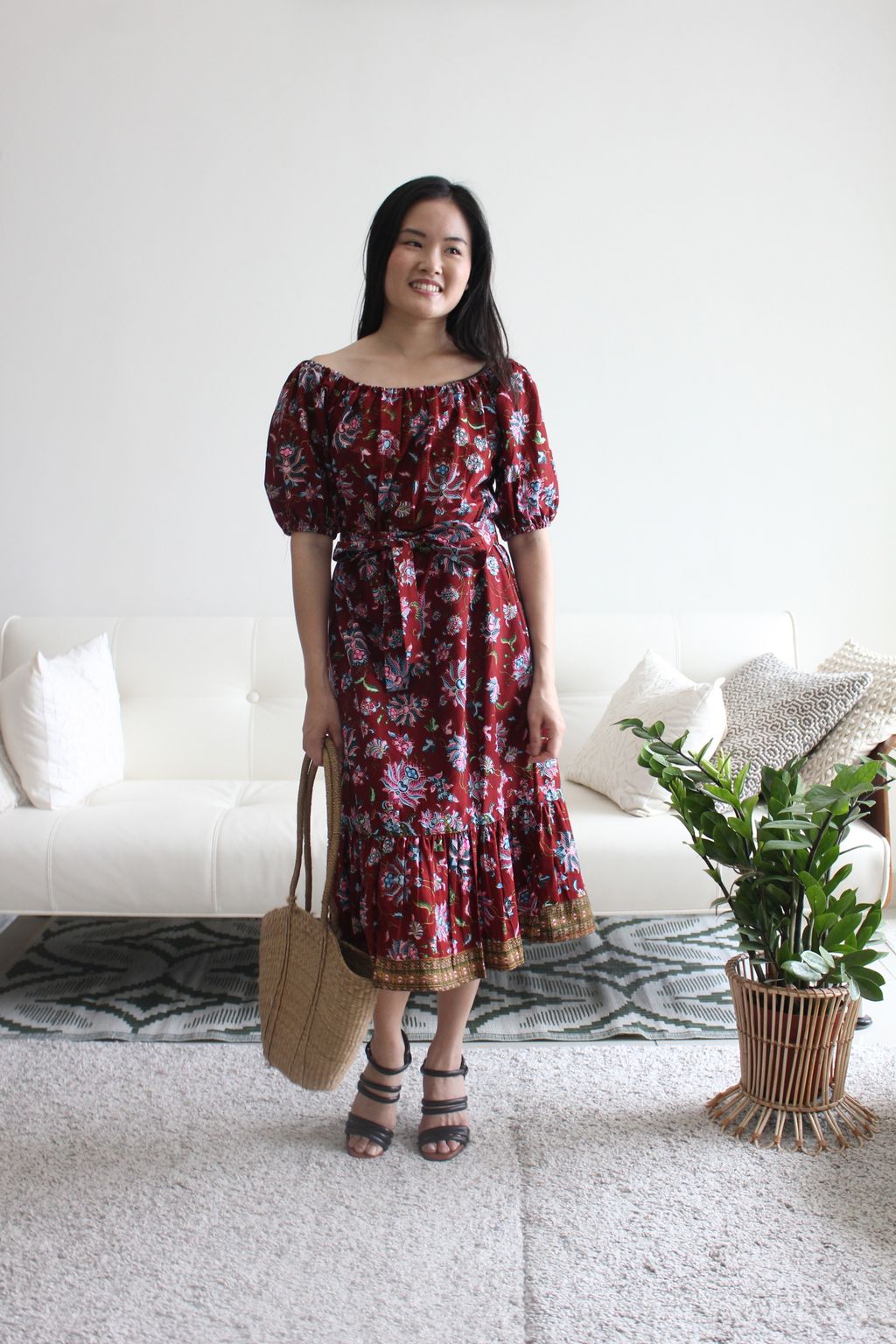 The batik dress you can just throw on, feeling gorgeous on a day out. Comfortable with a feminine silhouette that niche at the waist. Has pockets at both sides and will fit a size s - m well! Only one made of each print :)