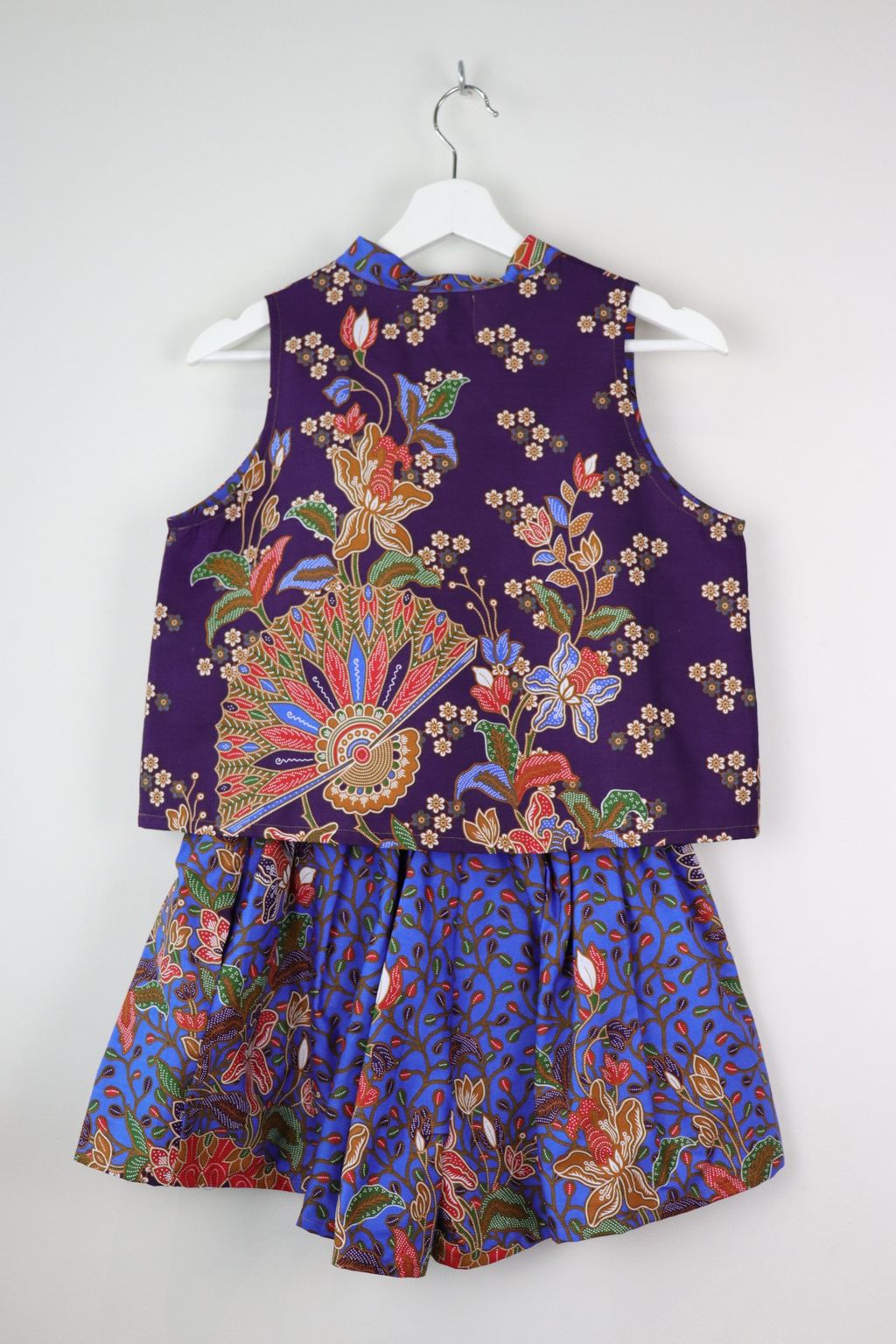 A sleeveless top with a fortune circle ribbon tie front + a matching shorts with pockets!