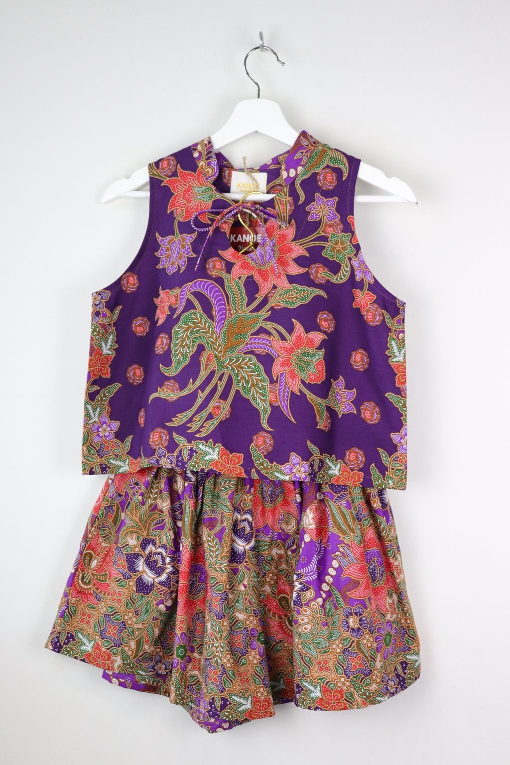 A sleeveless top with a fortune circle ribbon tie front + a matching shorts with pockets!