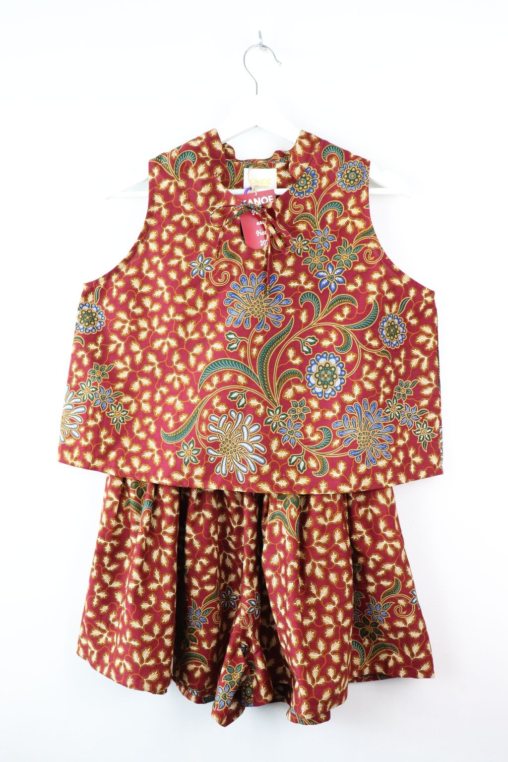 A sleeveless top with a fortune circle ribbon tie front + a matching shorts with pockets!