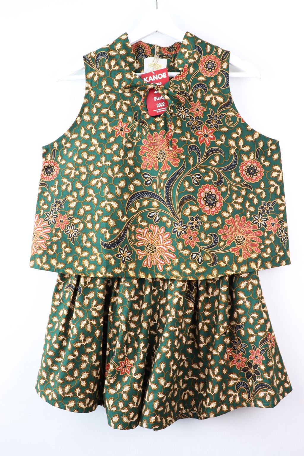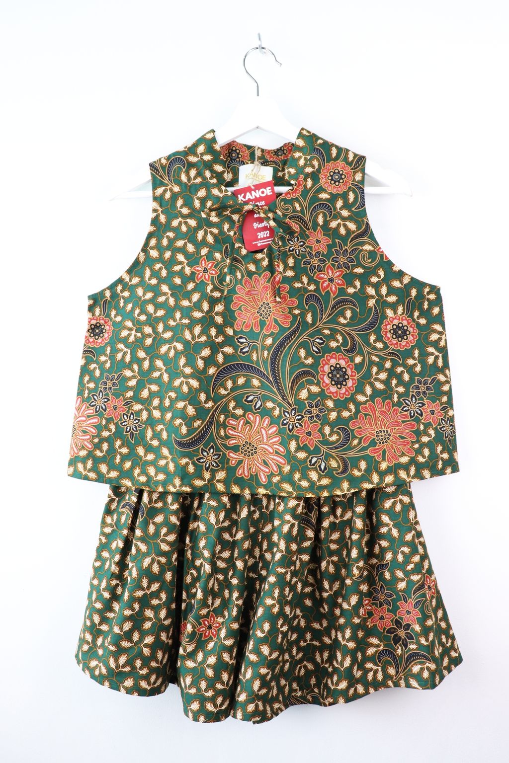 A sleeveless top with a fortune circle ribbon tie front + a matching shorts with pockets!