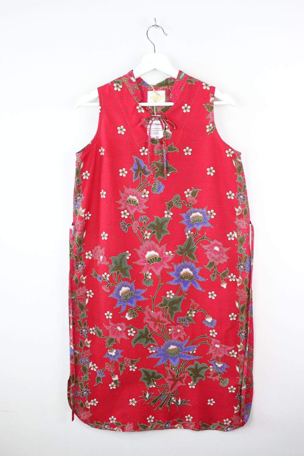 With pockets and a waist tie to niche in at the waist giving a feminine form.