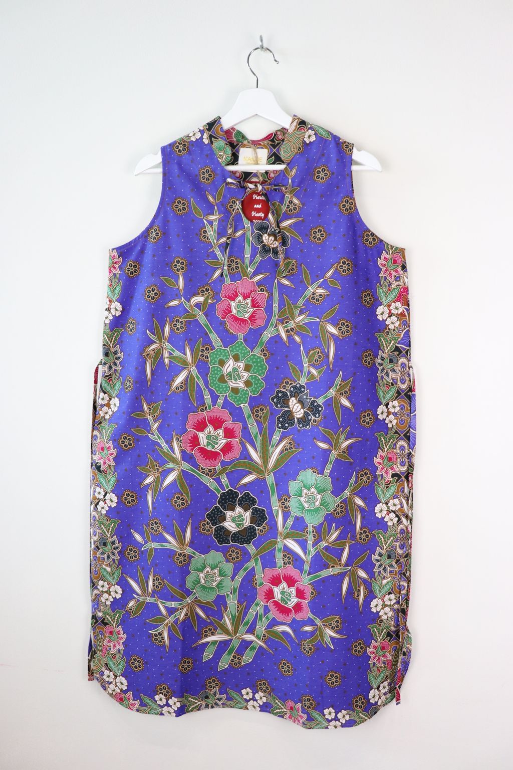 With pockets and a waist tie to niche in at the waist giving a feminine form.