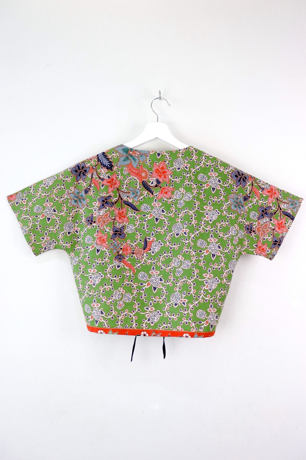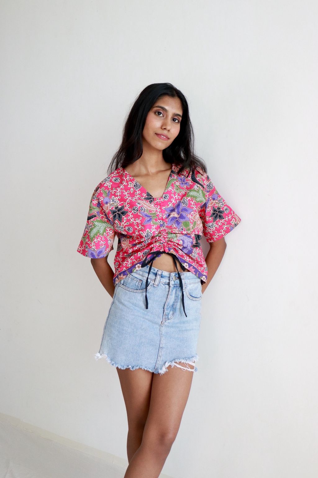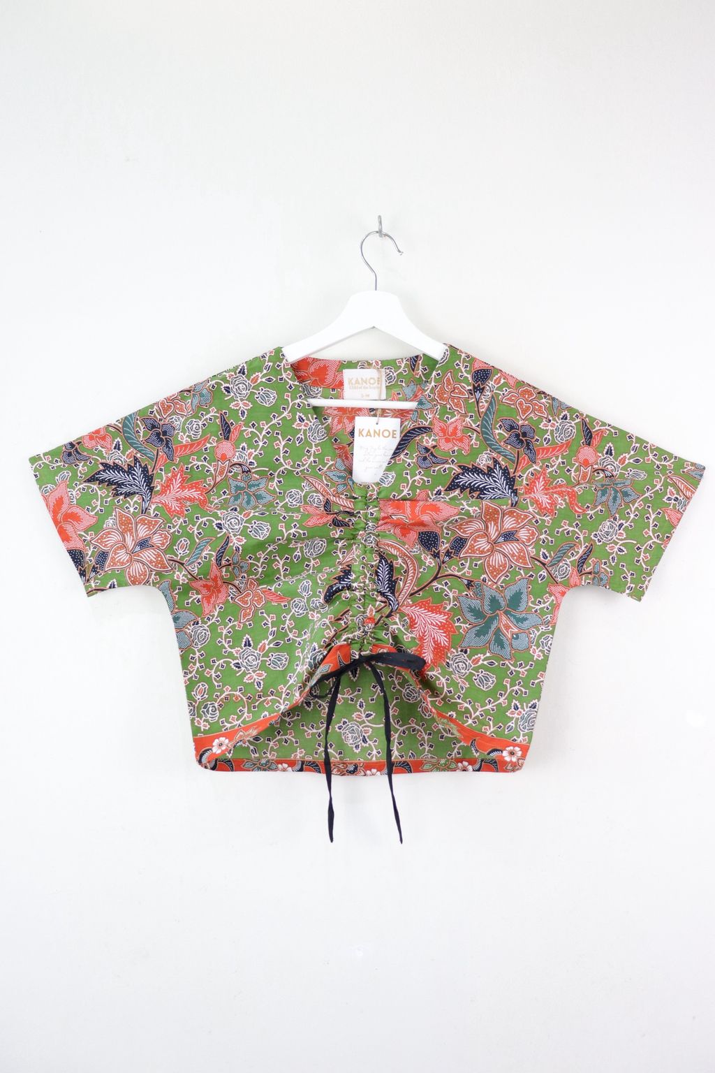 Front Ruched Drawstring Batik Top - Botanical Breeze ( S - M )