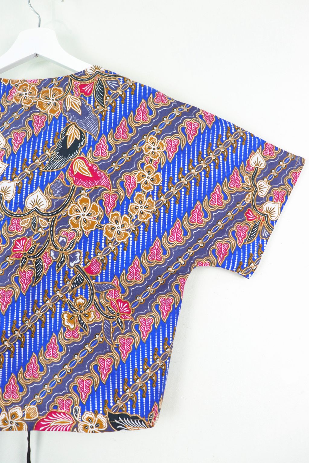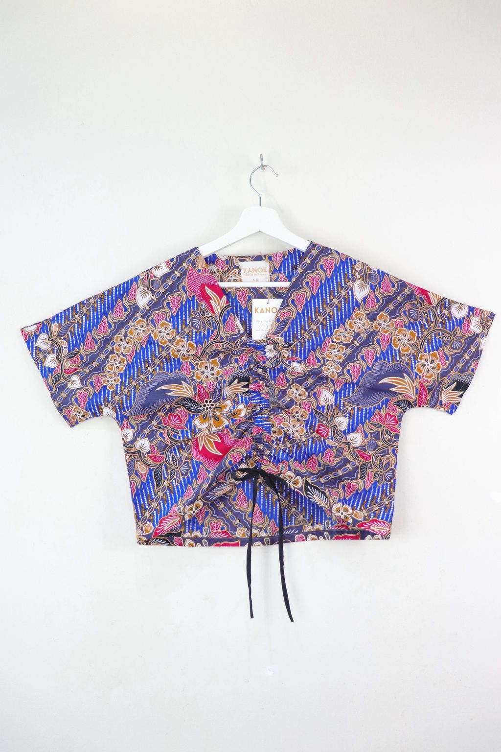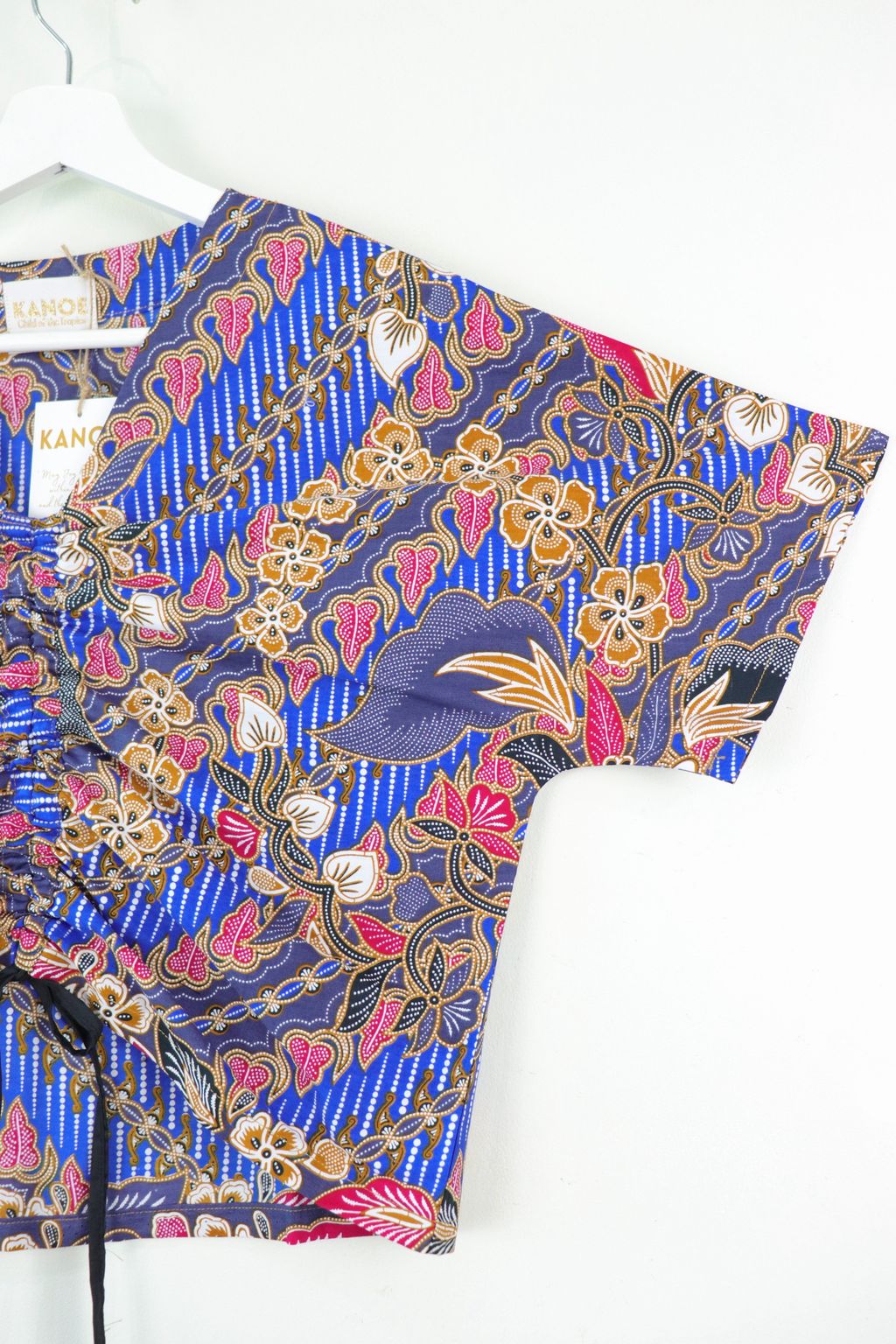 Front Ruched Drawstring Batik Top - Island Coastline ( S - M )