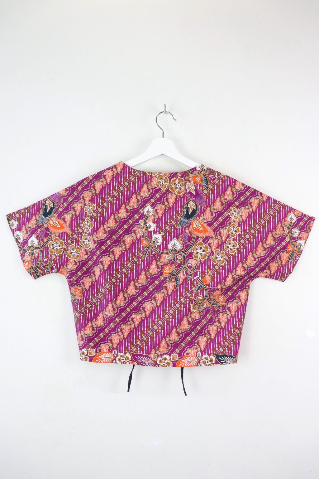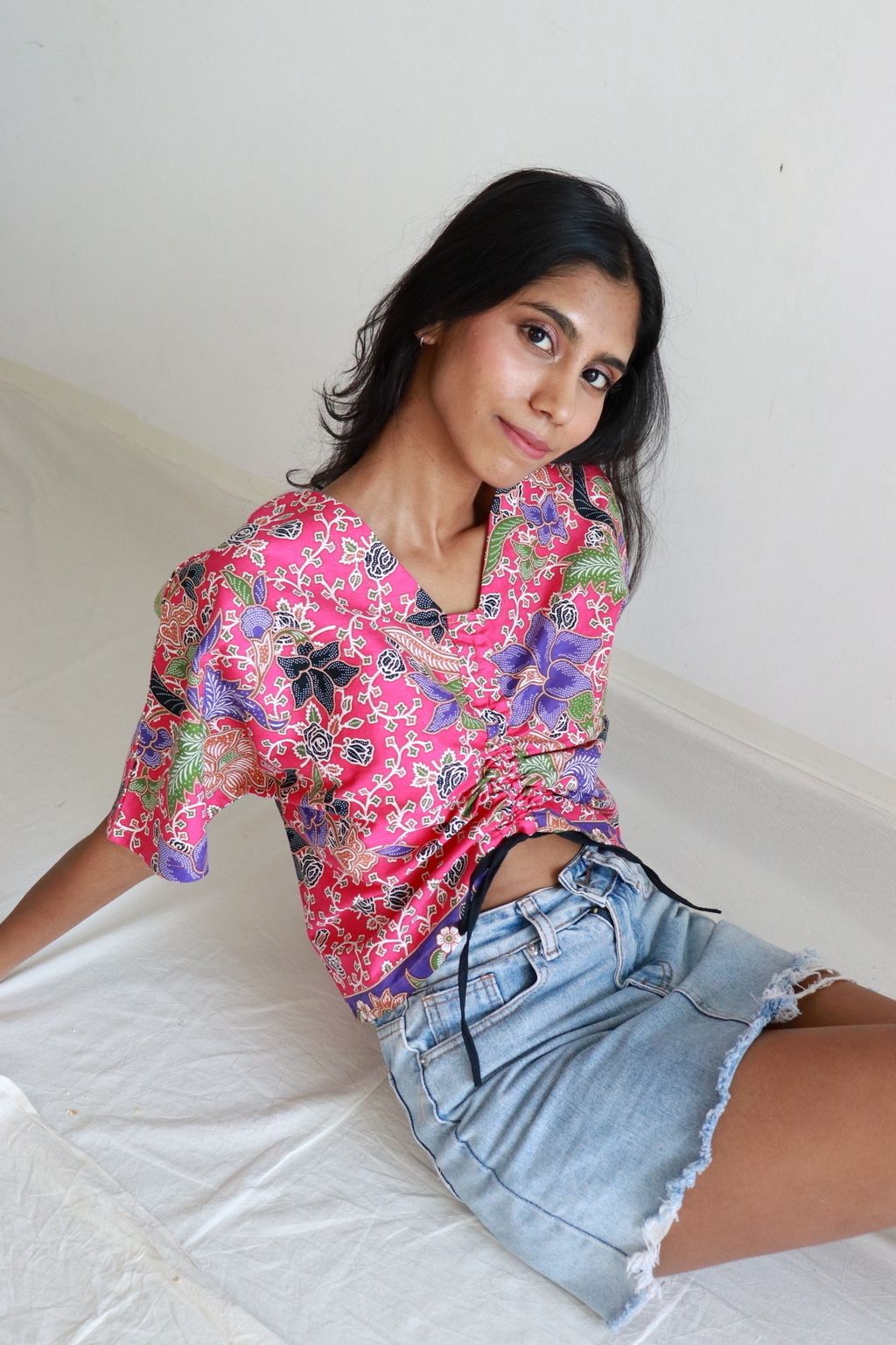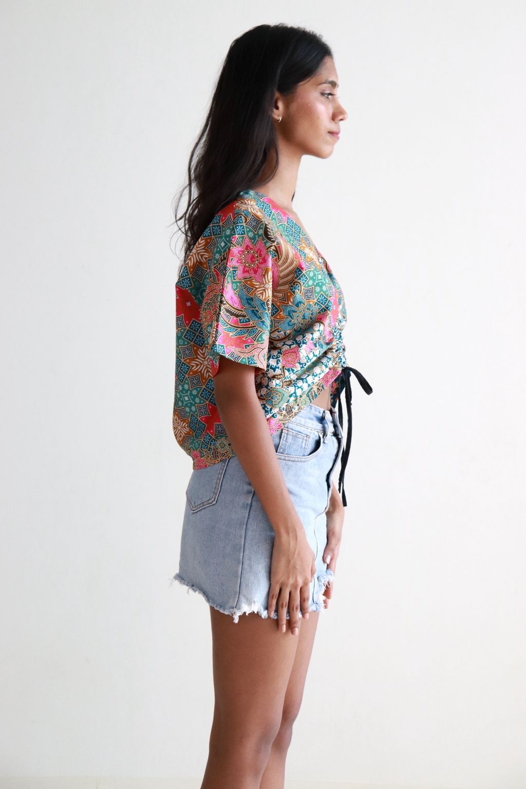 Front Ruched Drawstring Batik Top - Sunkissed Acai ( S - M )