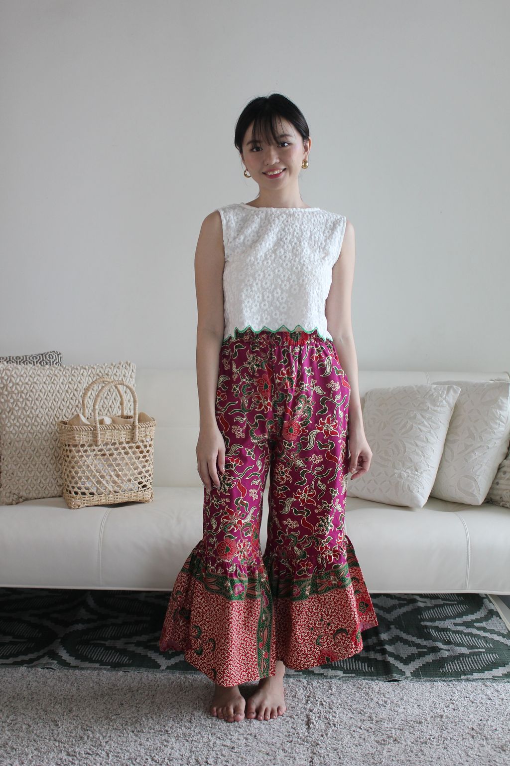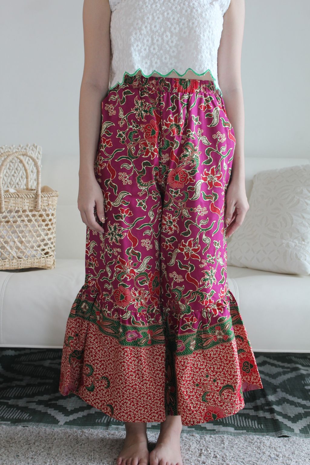 These Klassik Batik Frou Pants are extremely comfortable, easy to wear and just makes wearing pants a party. You'll love it. Made of 100% cotton batik. Limited in print.