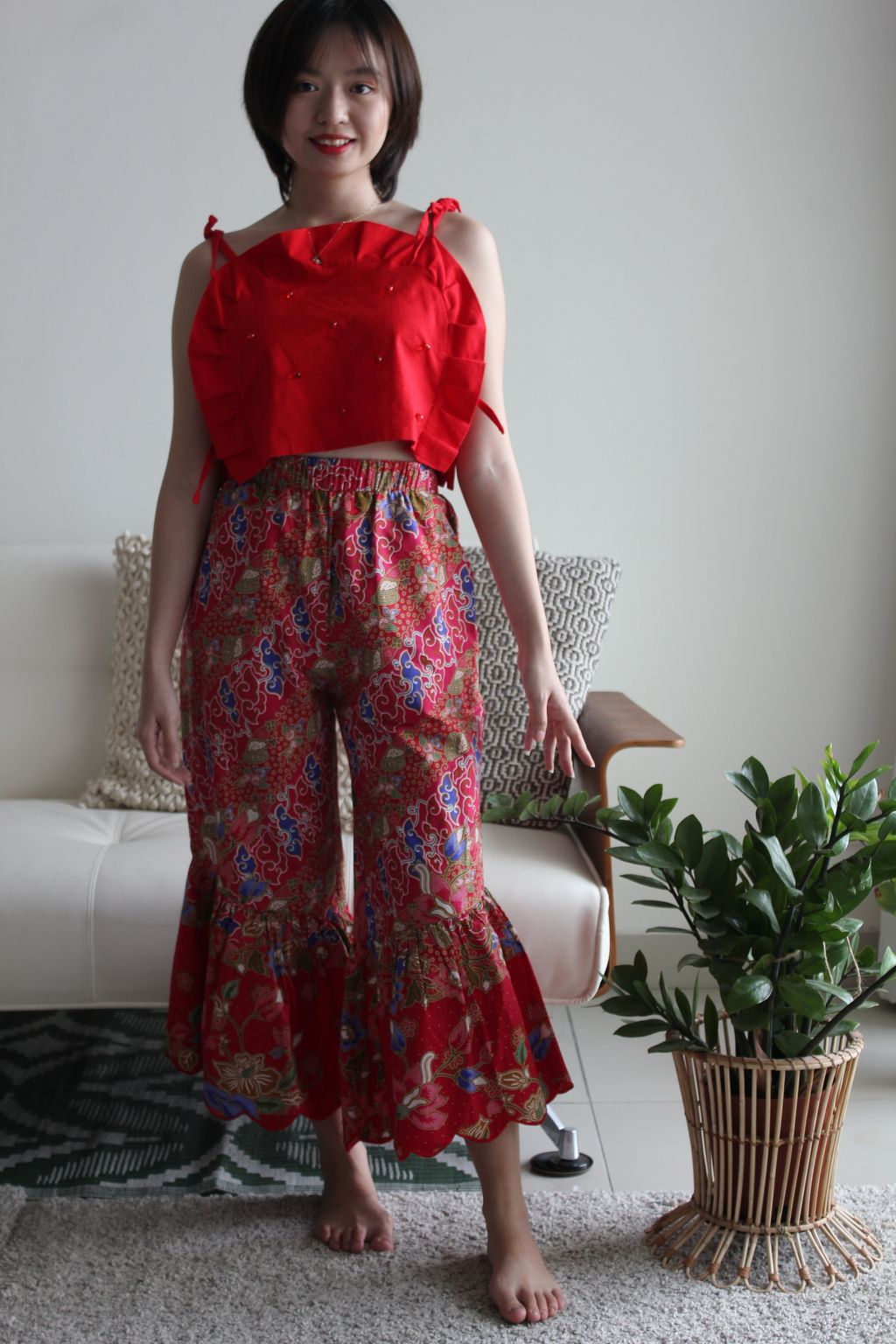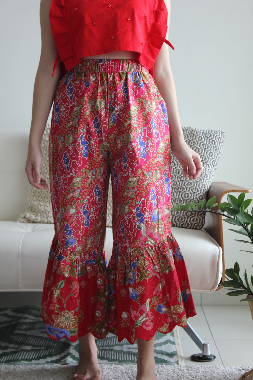 These Klassik Batik Frou Pants are extremely comfortable, easy to wear and just makes wearing pants a party. You'll love it. Made of 100% cotton batik. Limited in print. This special edition ones for CNY2020 has hand machine sulam scallop edging that add's a feminine sway!