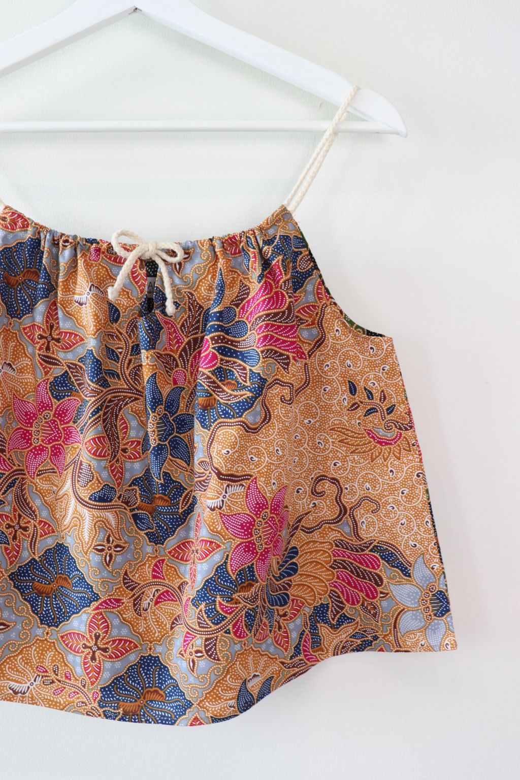 We thought about how it would be nice to have that batik top for any Tropical getaway!