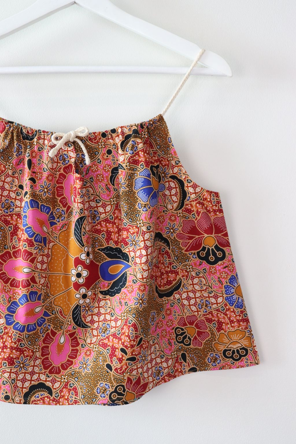 We thought about how it would be nice to have that batik top for any Tropical getaway!