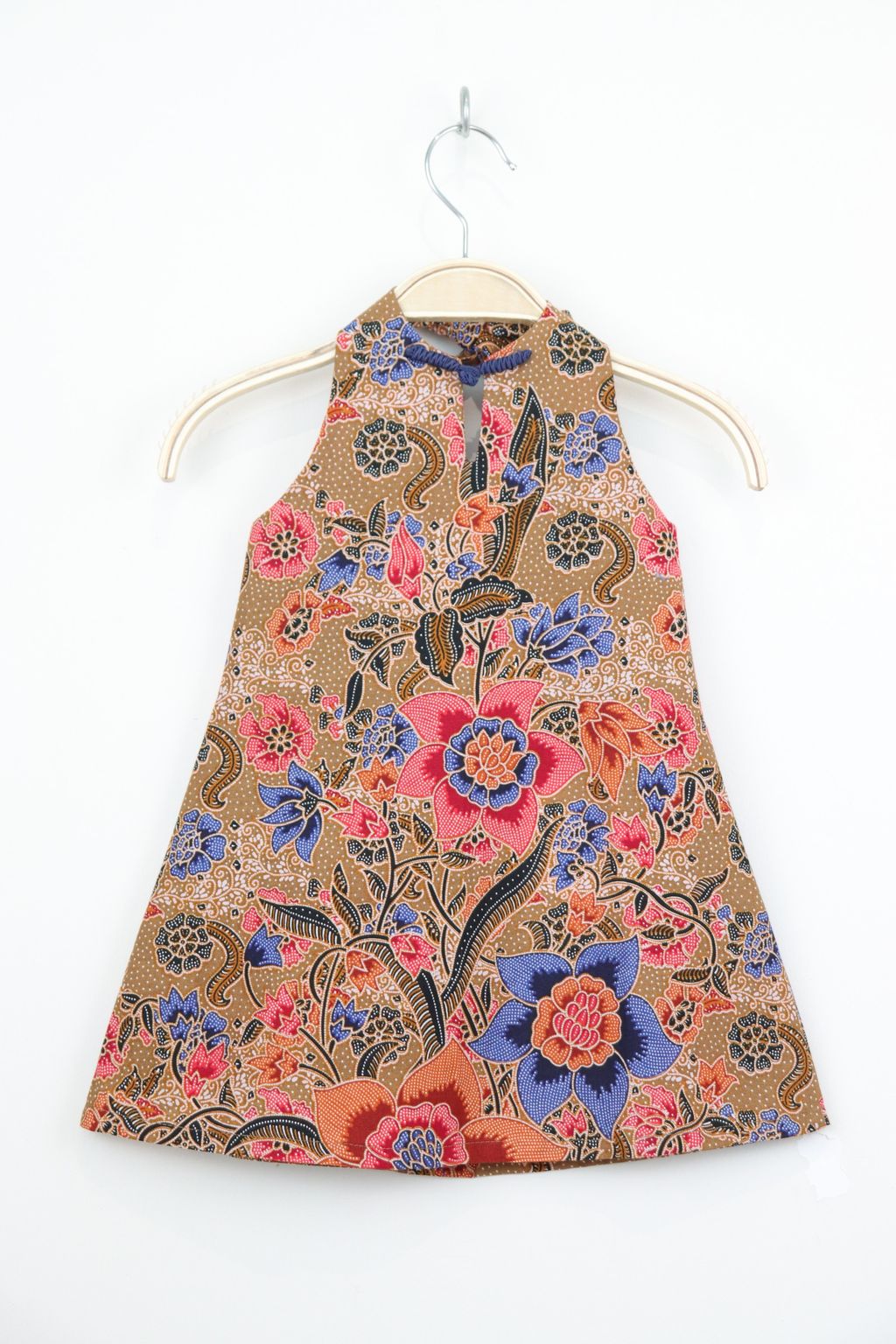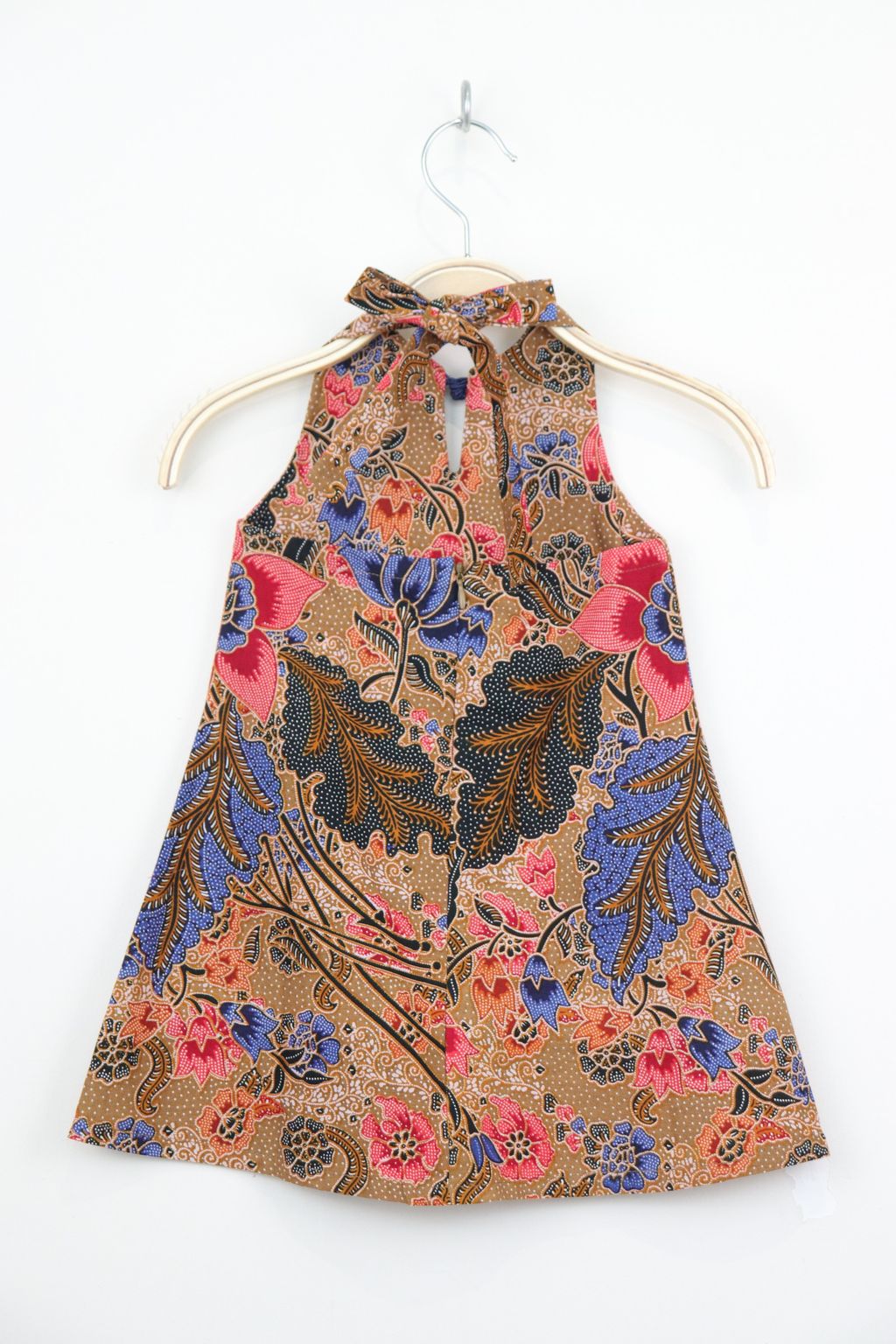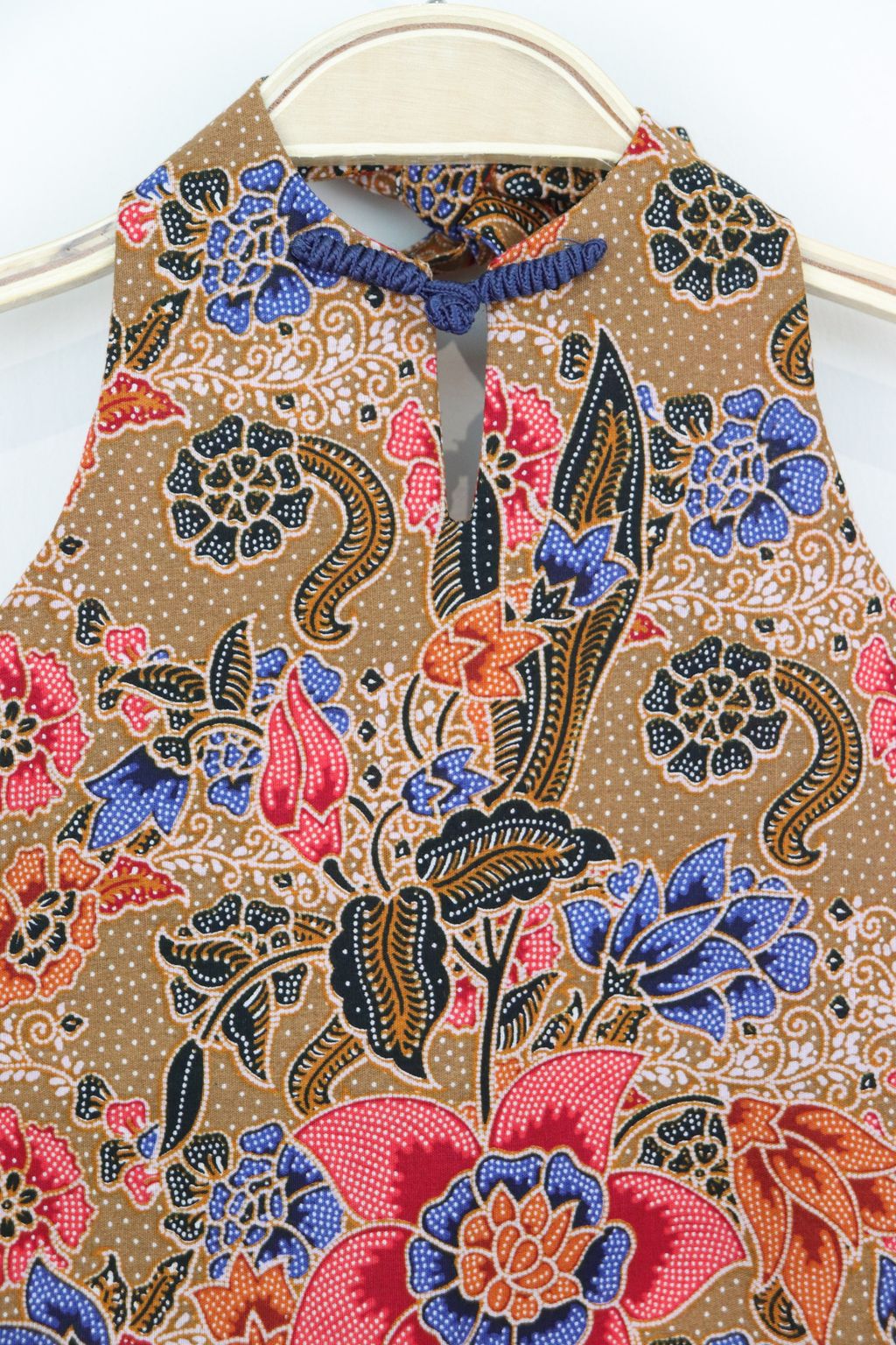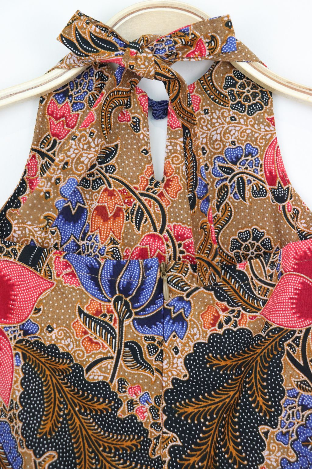 These super cute halter batik dresses feature a chinese clasp button above the keyhole cutout!