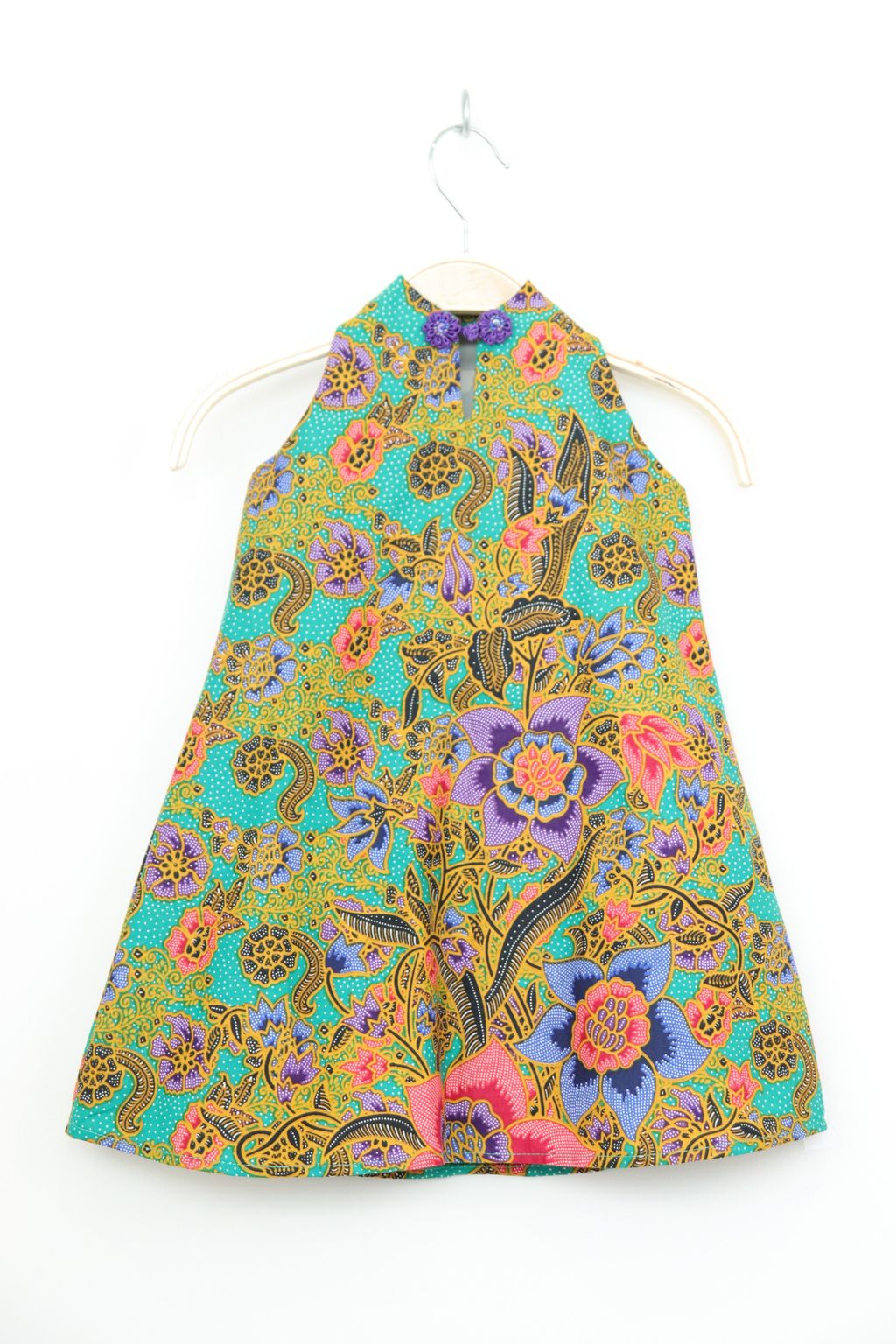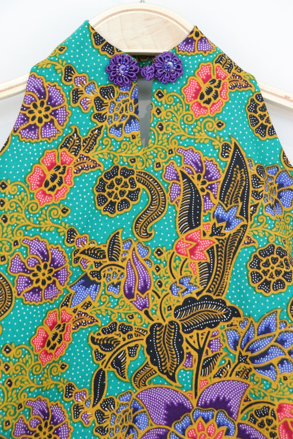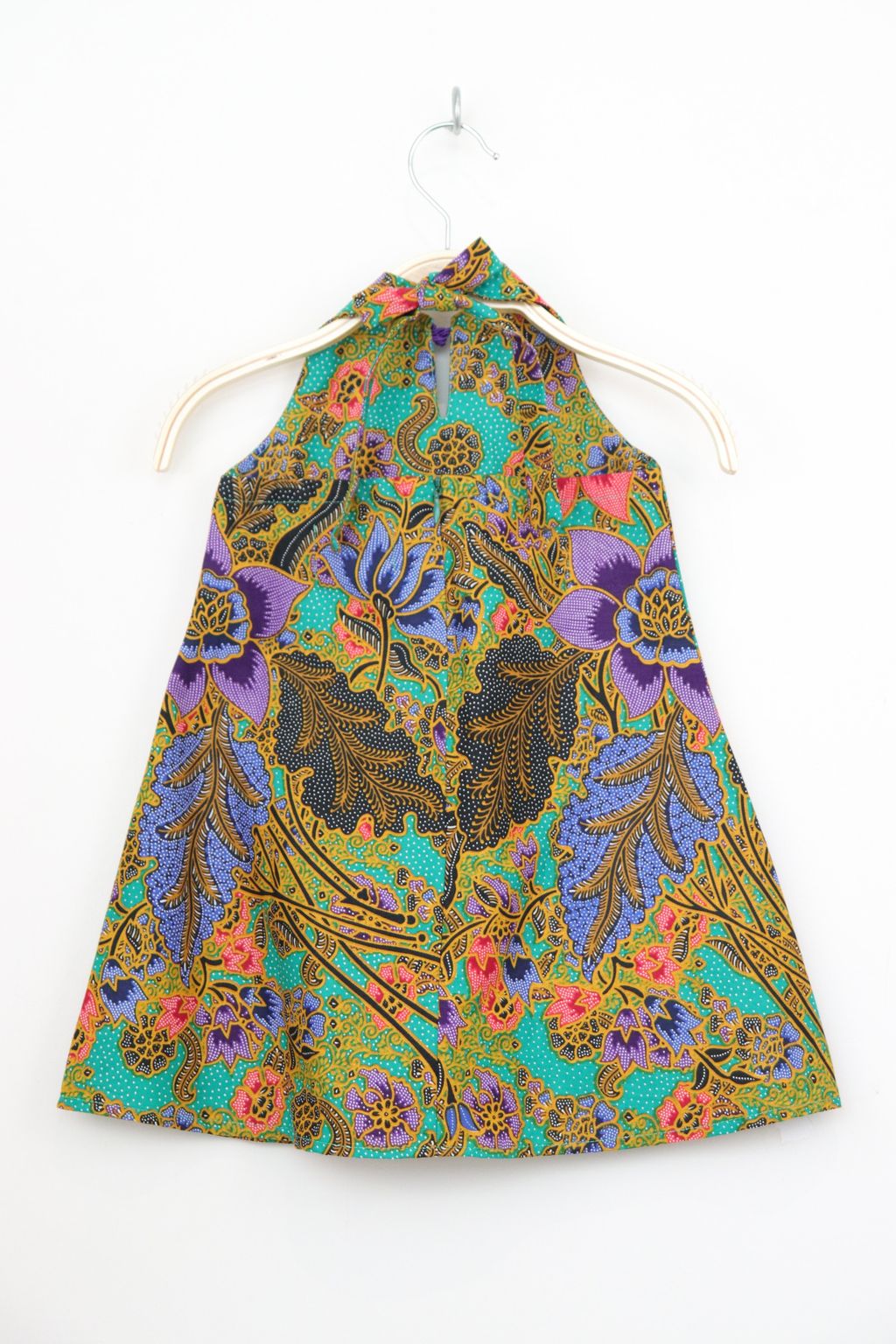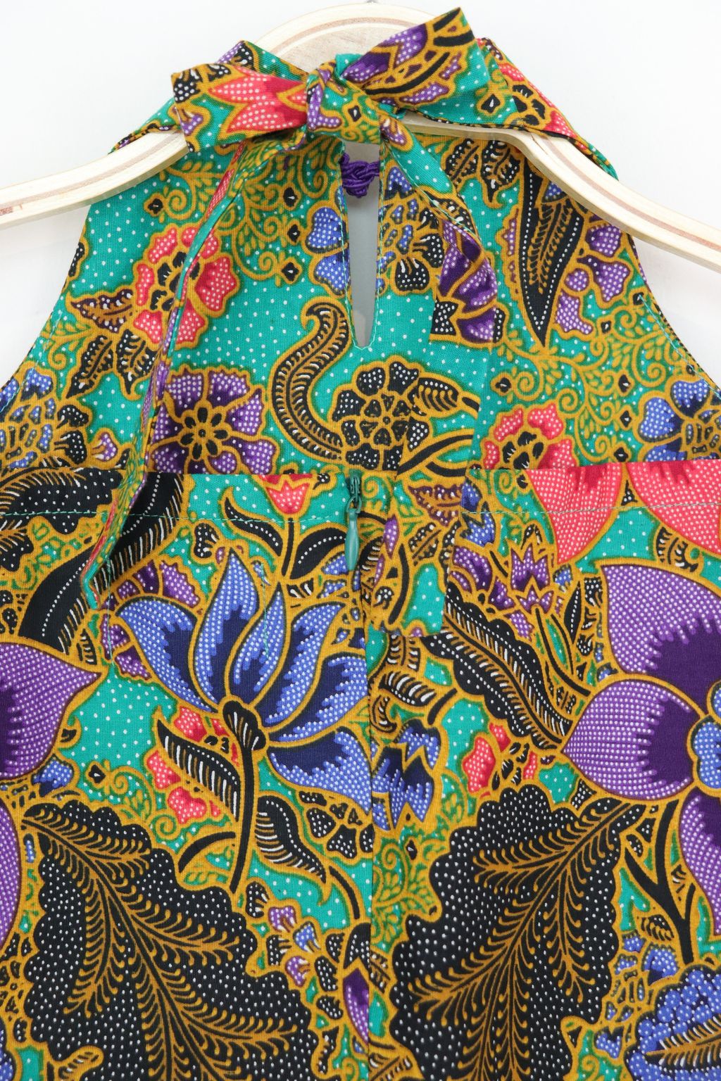 These super cute halter batik dresses feature a chinese clasp button above the keyhole cutout!