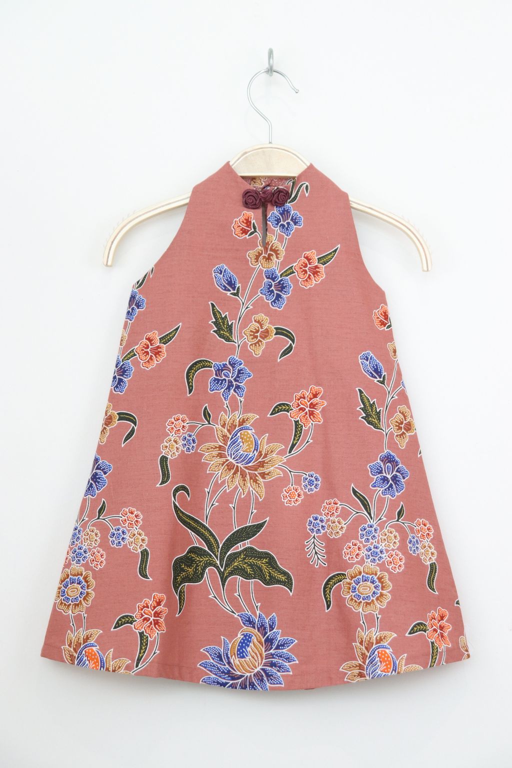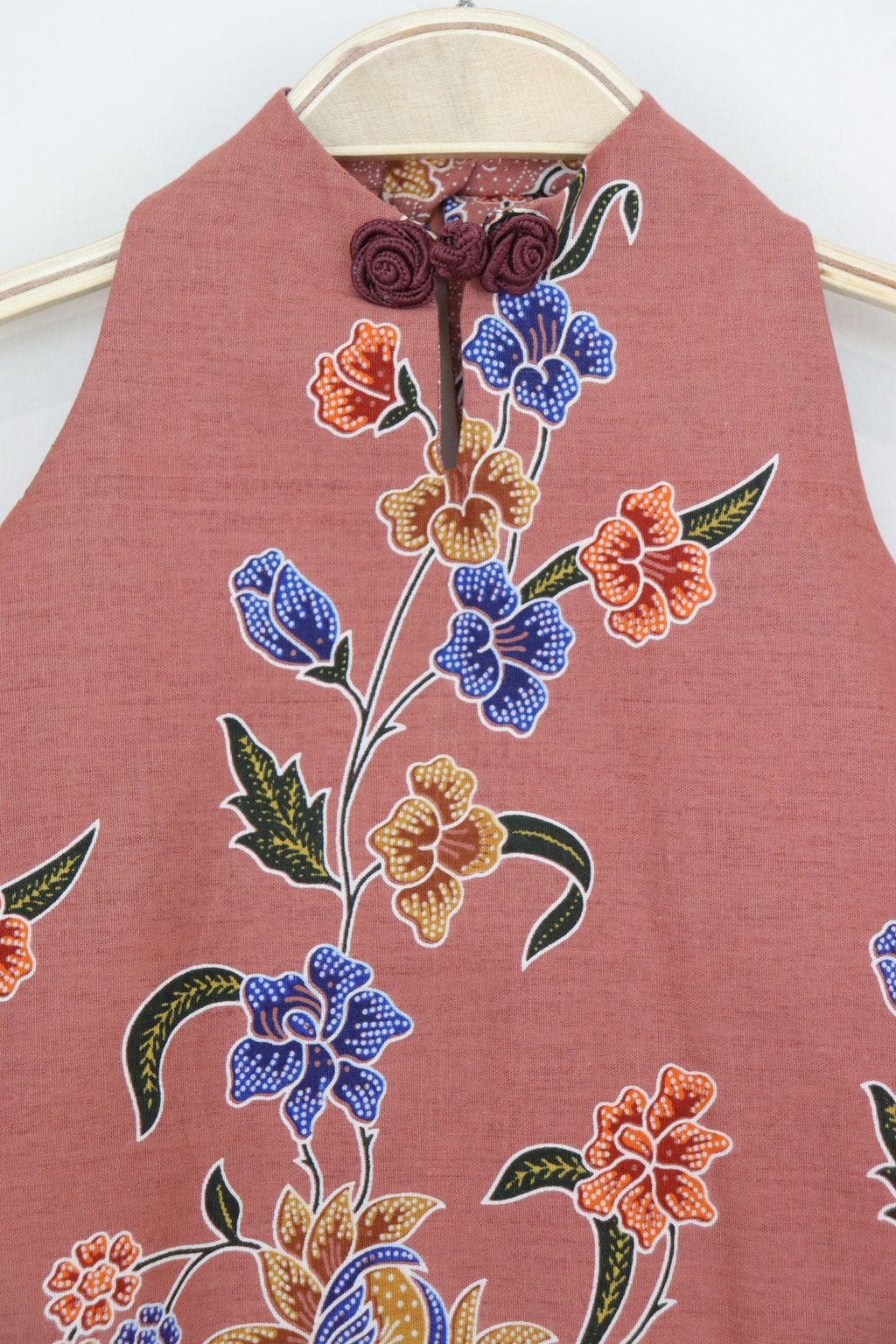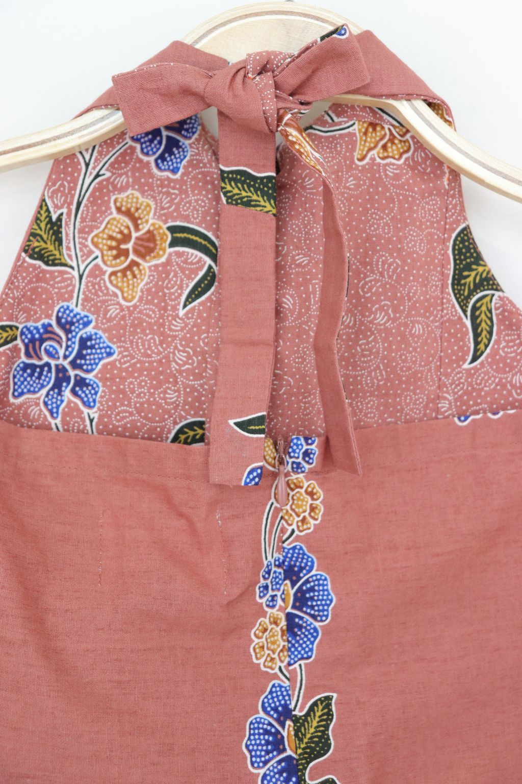 These super cute halter batik dresses feature a chinese clasp button above the keyhole cutout!