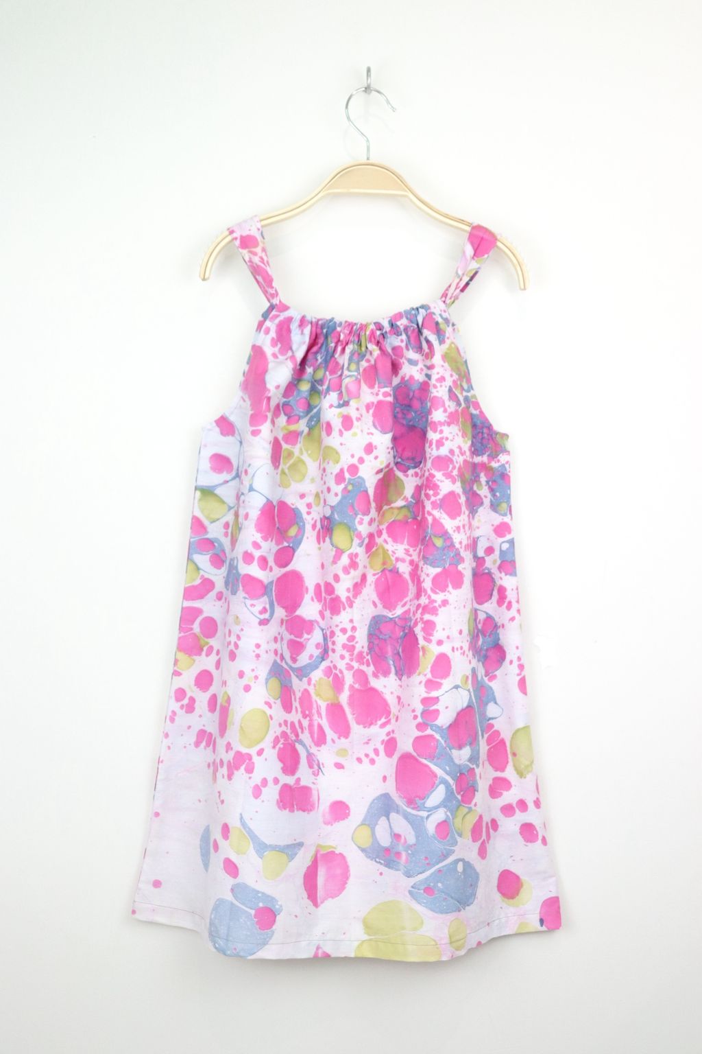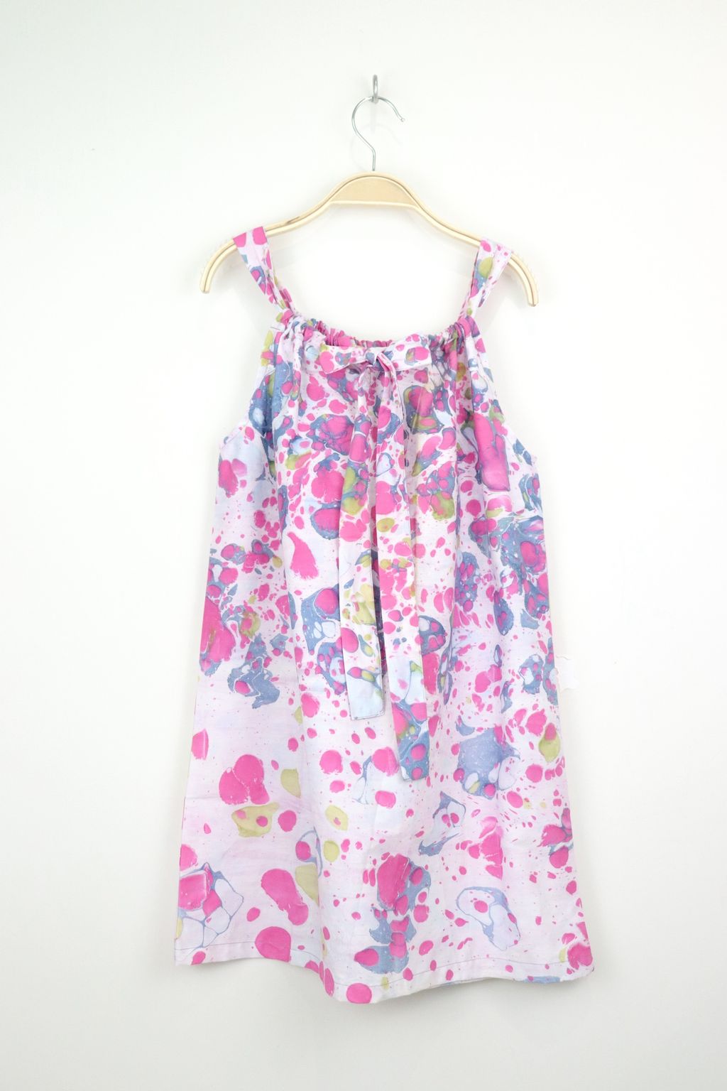 Girl's Drawstring Batik Dress - Bubblegum [ Handmade ]
