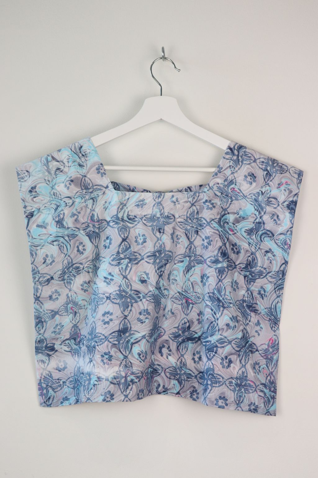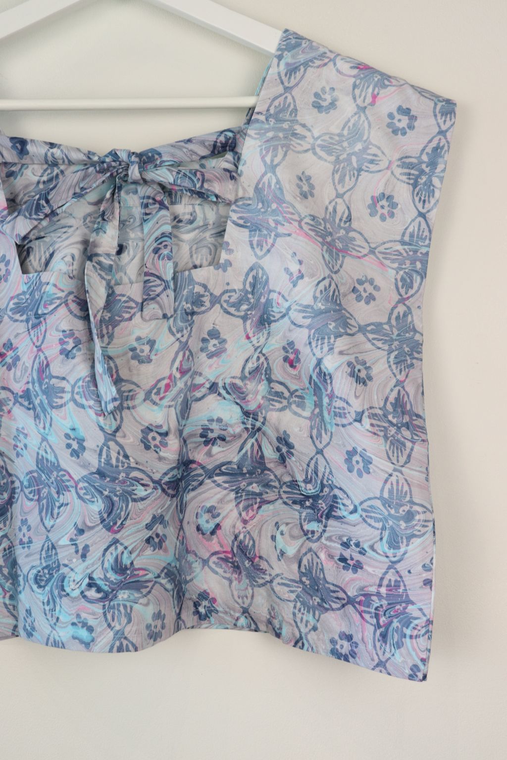 Dreamy Milky Rainbow Swirls of Pastel Shades of these Boxy GroceryDate Batik Top. Textile handmade by local Artisans on 100% cotton. A mix of hand marbling dye technique combined with inverse copper wax stamp batik terap motifs resulting in a wonderful display of our local artisans creativity.