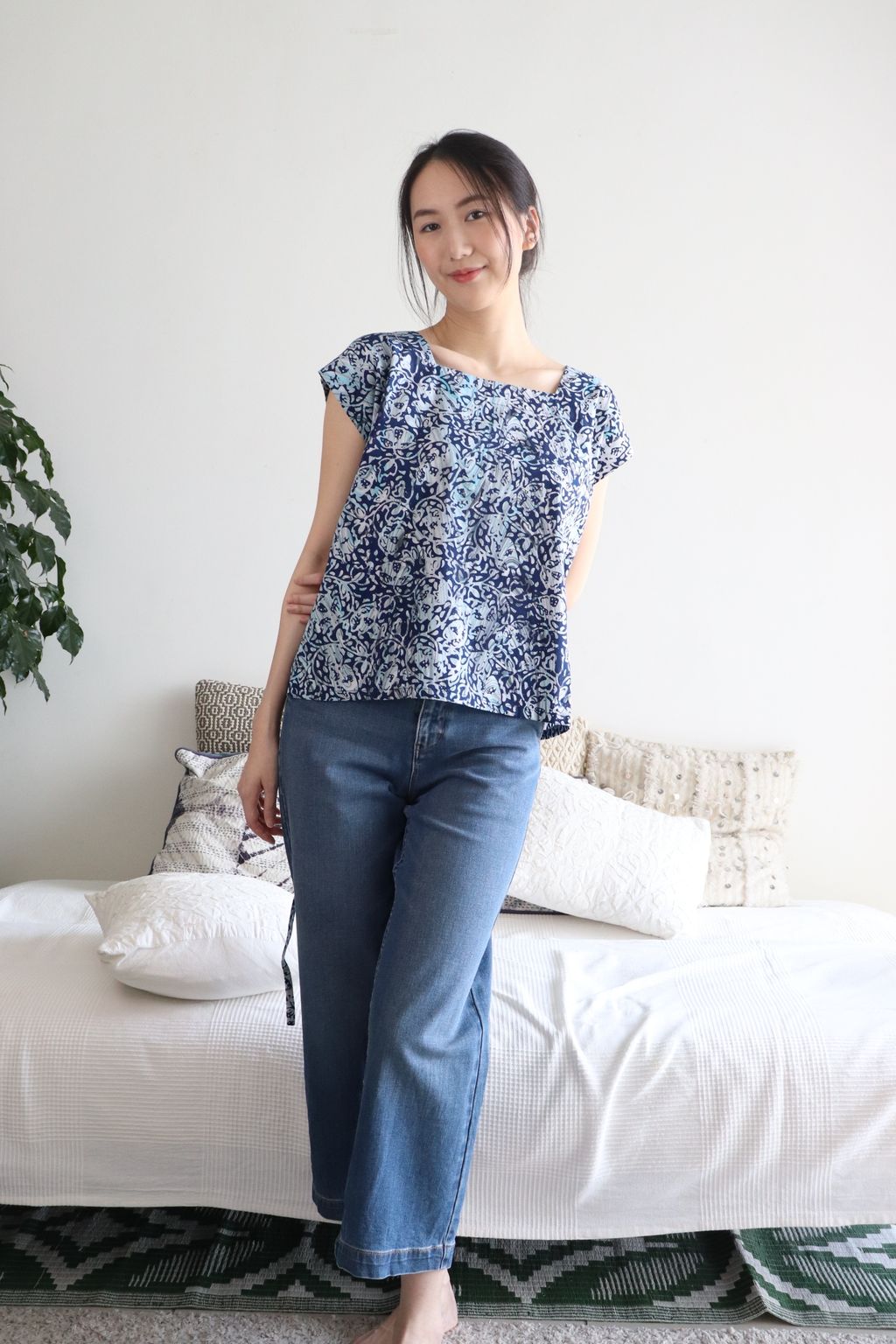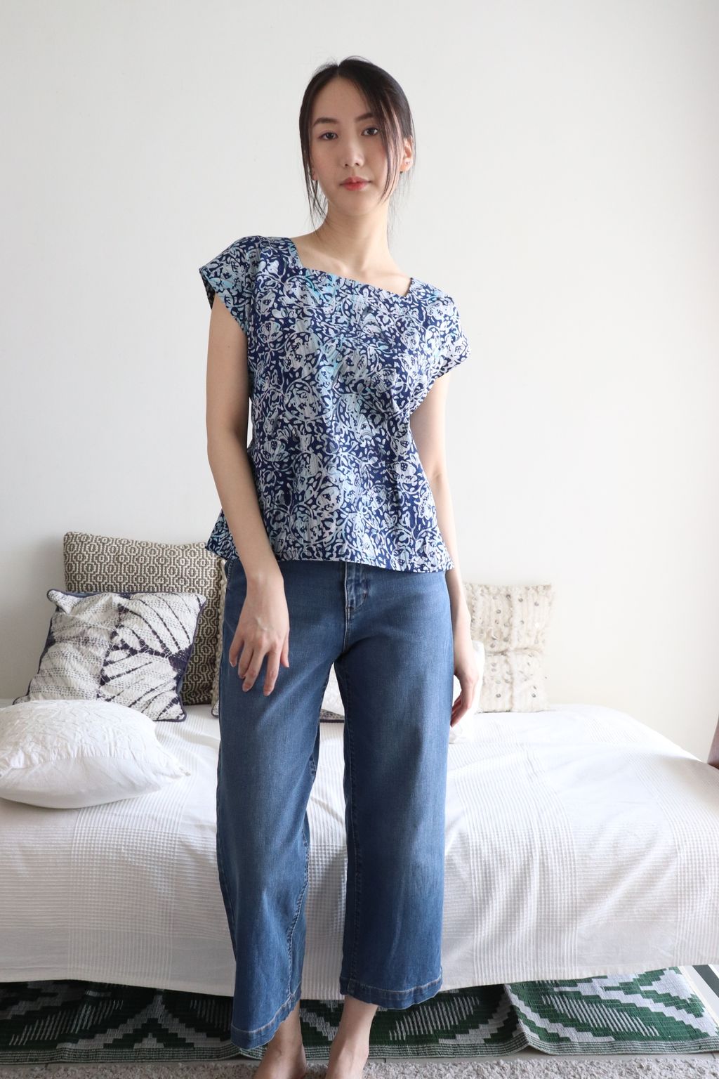 BrunchDate Boxy Batik Top - SkyCrush ( Hand Marbled )
