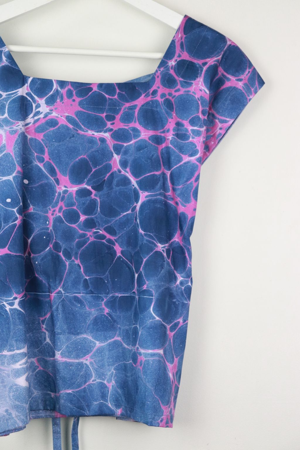 BrunchDate Boxy Batik Top - Blue Coral ( Hand Marbled )
