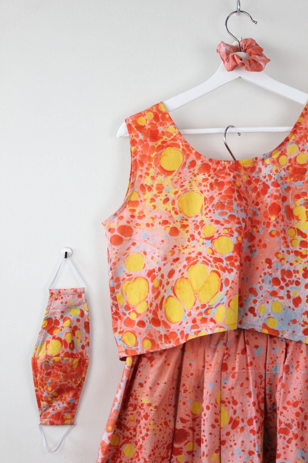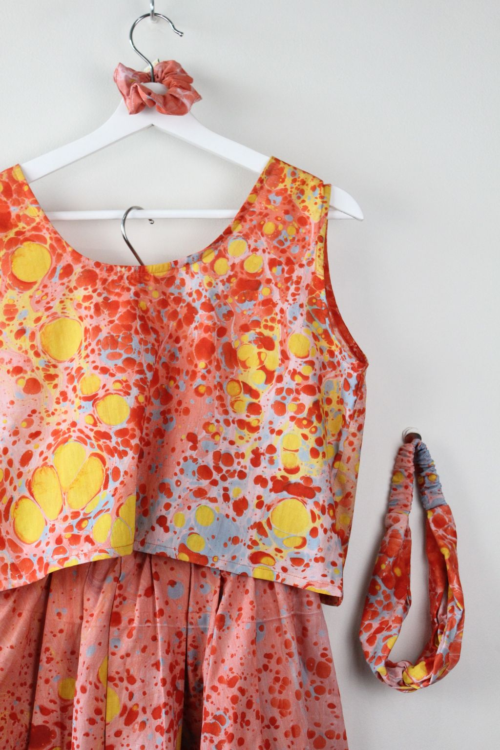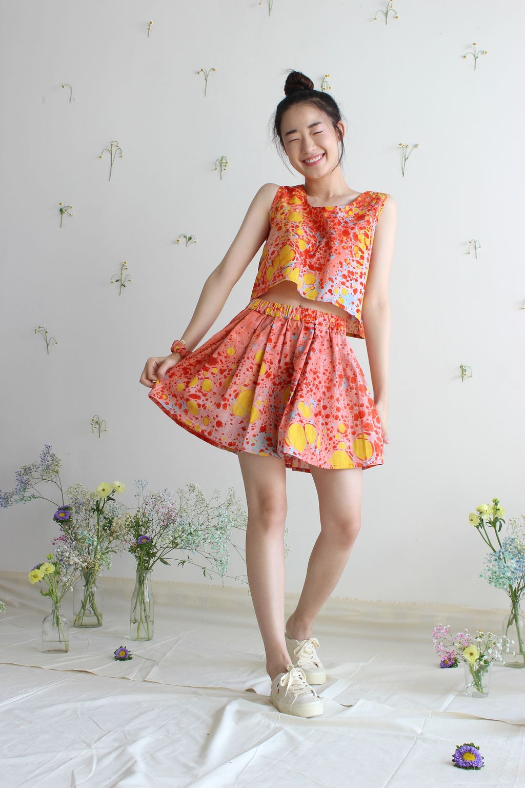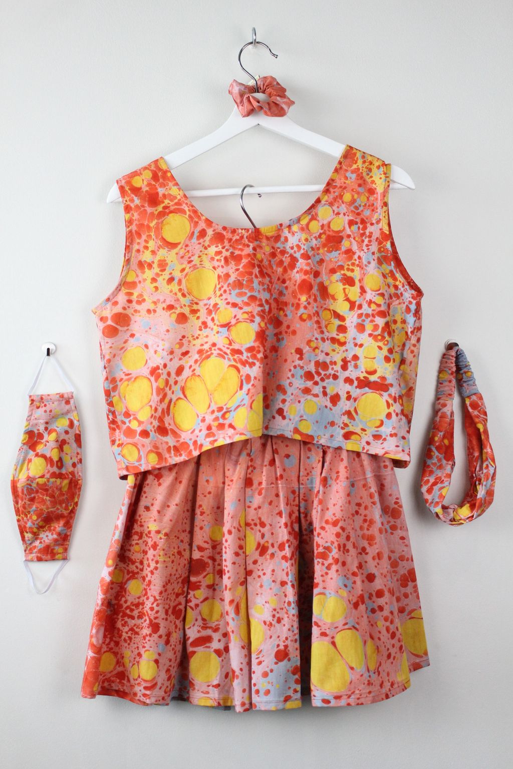 This set includes - a classic top, flare skirt , twisted headband, scrunchie, and face mask ! [ RRP : RM250 ]