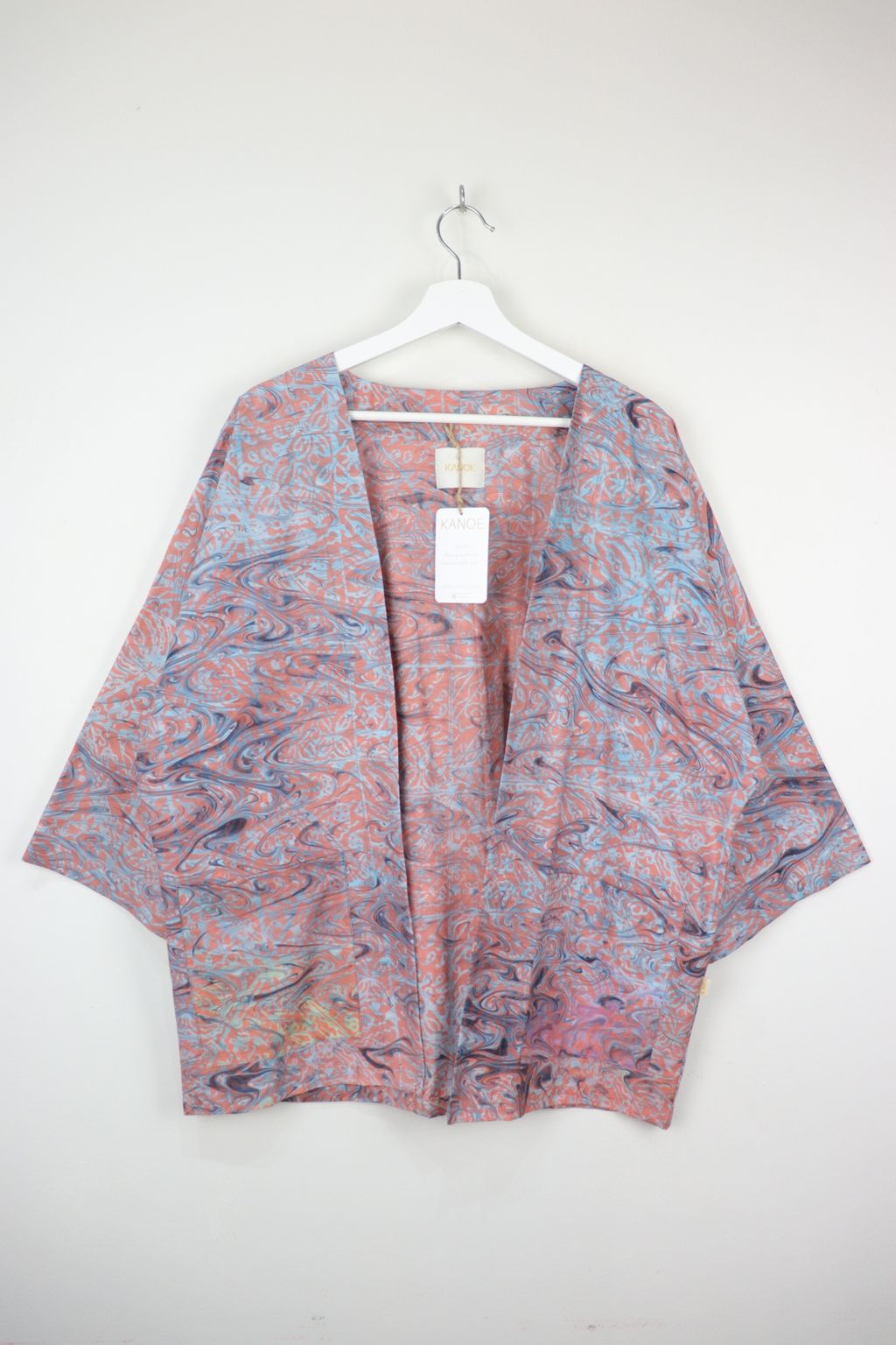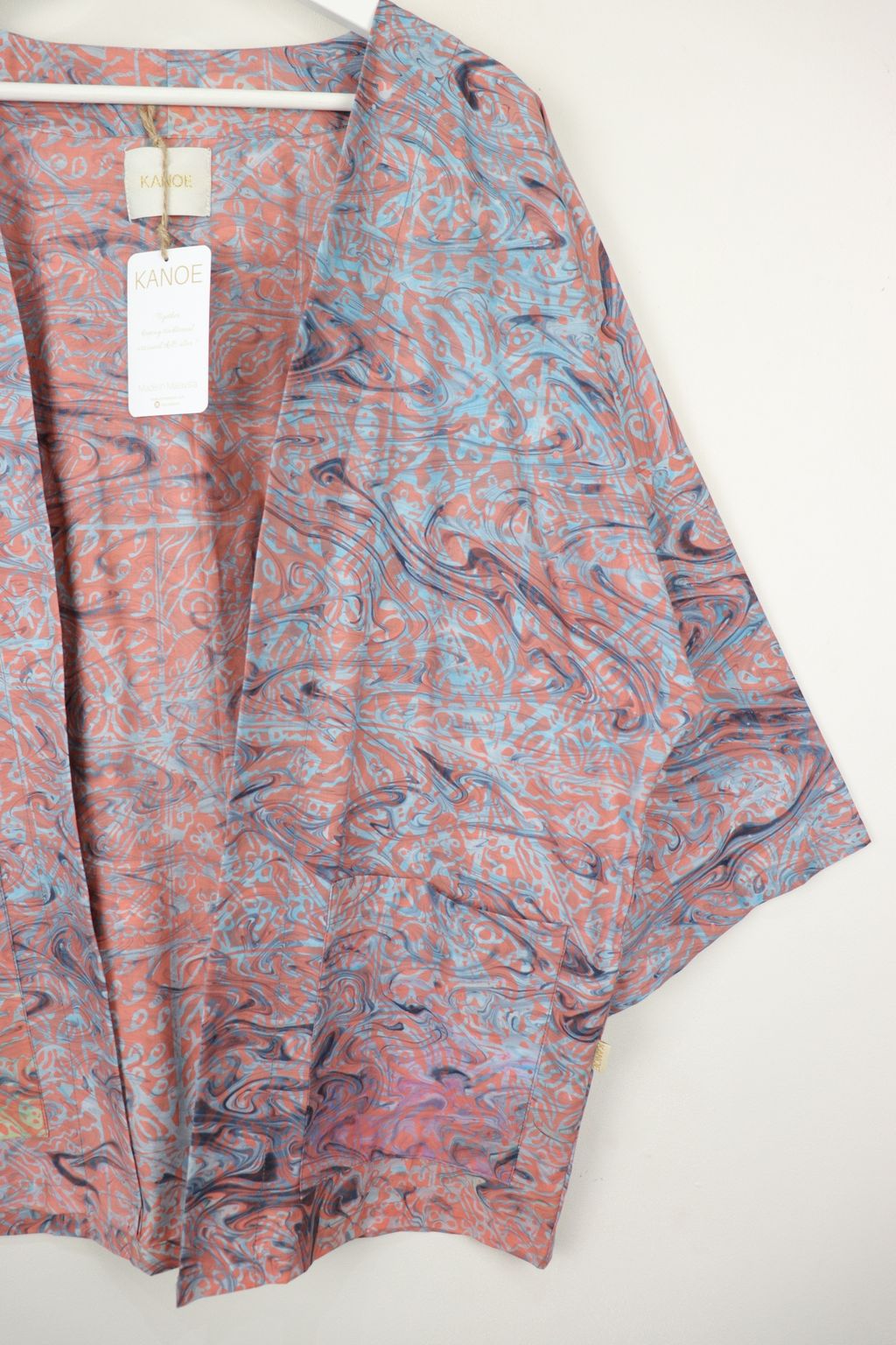 When we are stuck at home wearing a basic spaghetti strap top at home and the door bell rings, throw on this kimono before heading out to collect that parcel. Or if your boss calls you last minute for a zoom call. Throw on this batik kimono!