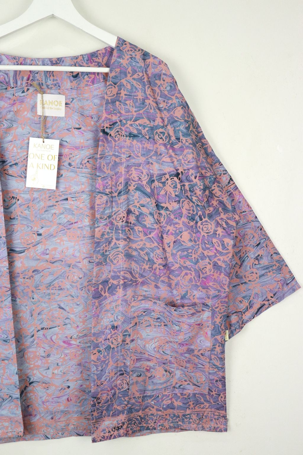 They have pockets in the front, and has a clean straight cut. These pieces are also made with handstamped batik done locally by Malaysian Artisans! A basic kimono batik for your everyday wear!