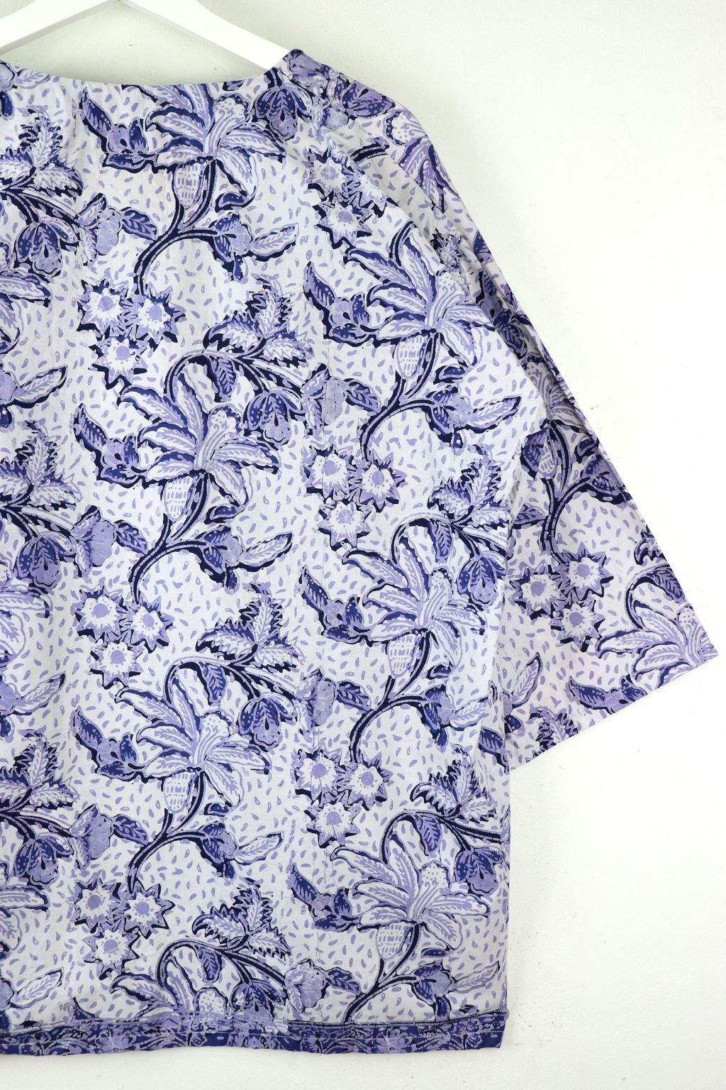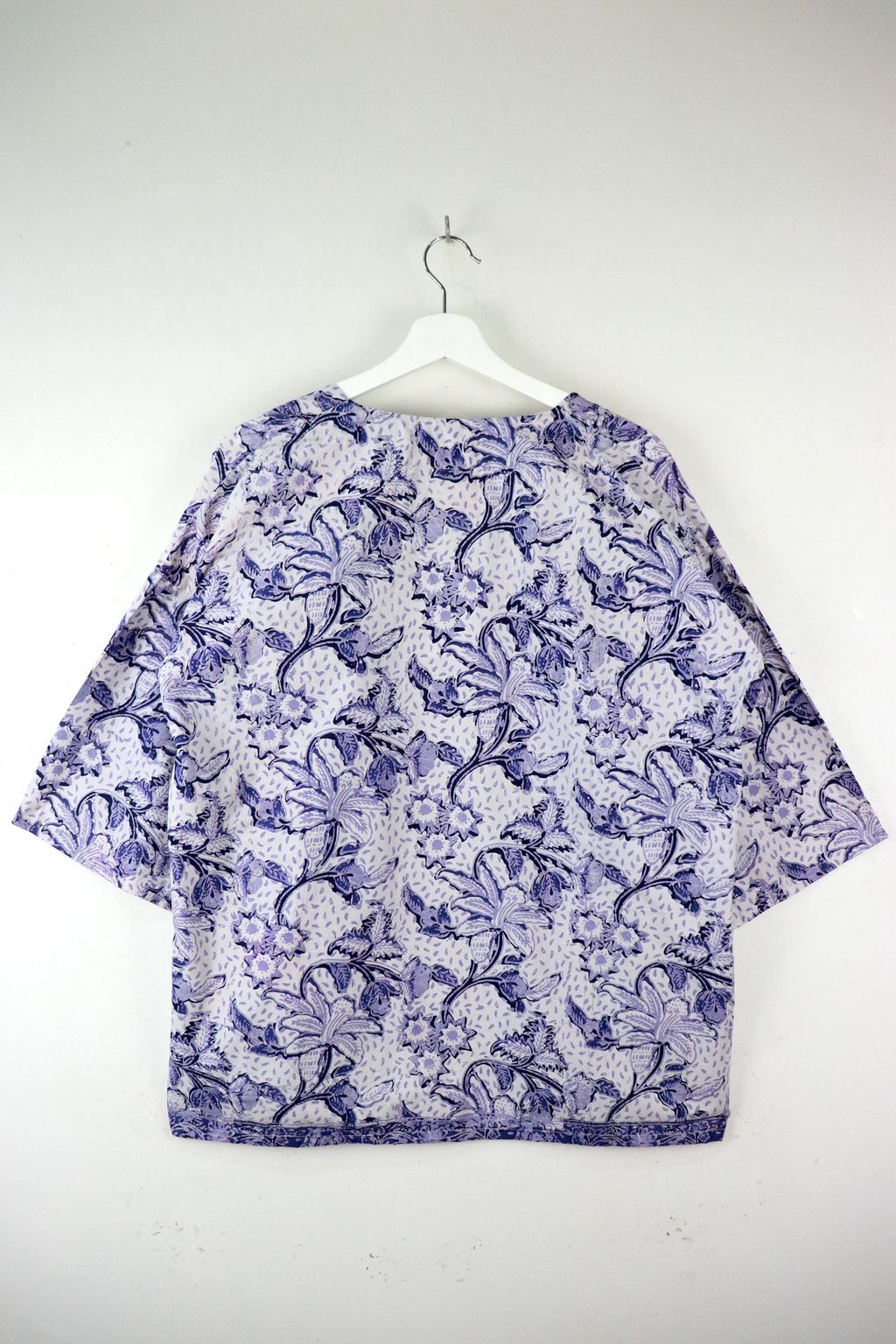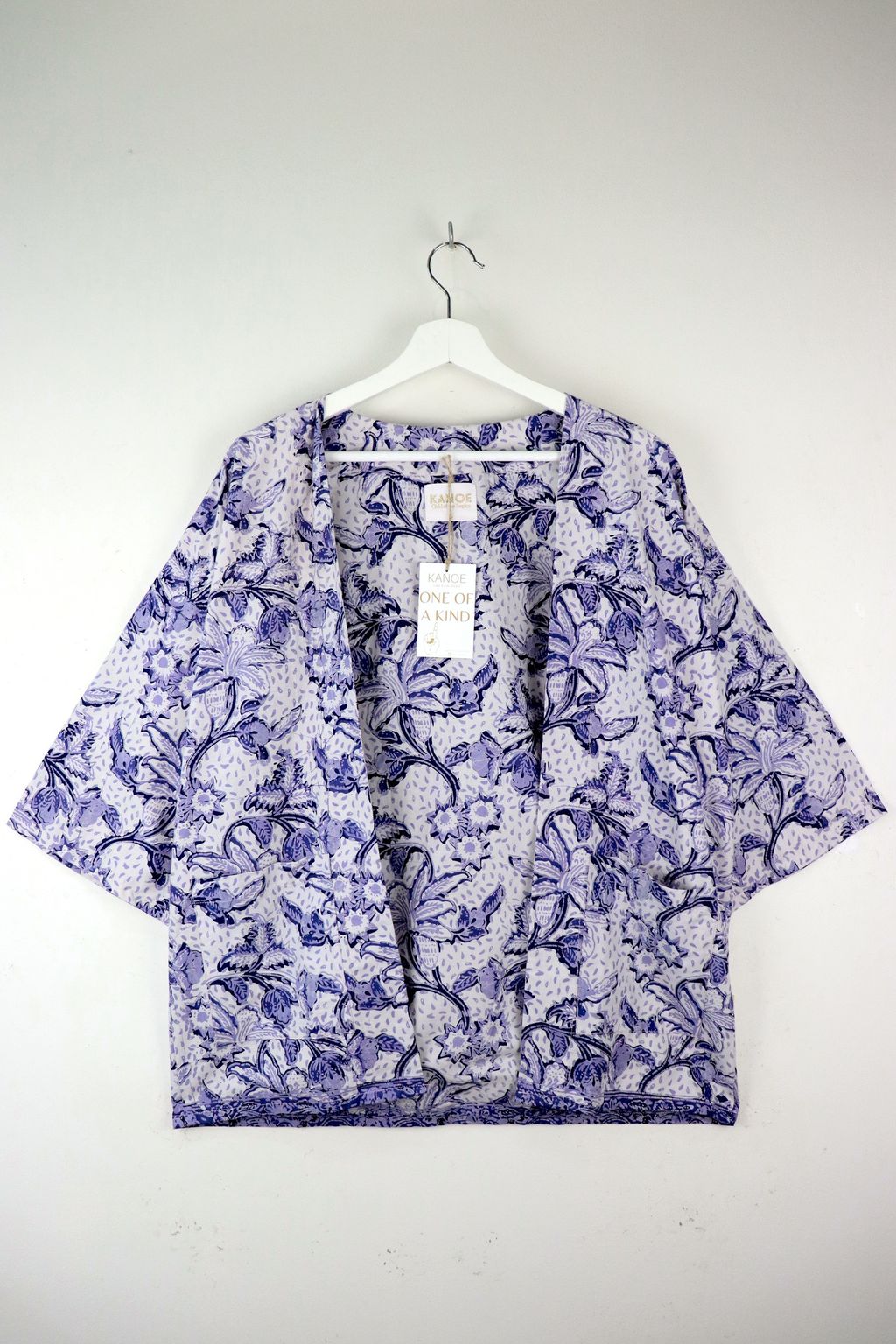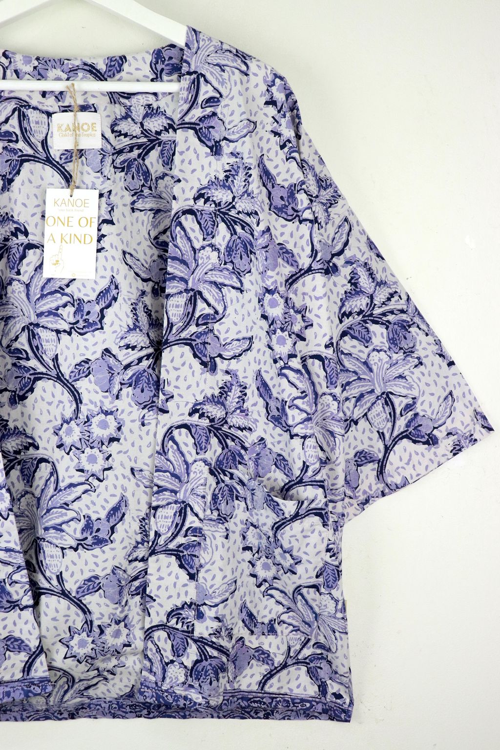 They have pockets in the front, and has a clean straight cut. These pieces are also made with handstamped batik done locally by Malaysian Artisans! A basic kimono batik for your everyday wear!