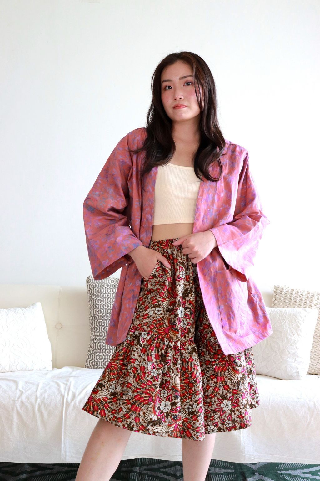 When we are stuck at home wearing a basic spaghetti strap top at home and the door bell rings, throw on this kimono before heading out to collect that parcel. Or if your boss calls you last minute for a zoom call. Throw on this batik kimono!