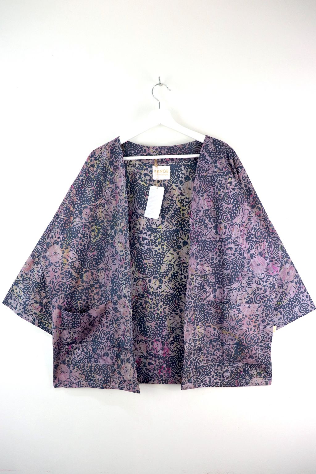 They have pockets in the front, and has a clean straight cut. These pieces are also made with handstamped batik done locally by Malaysian Artisans! A basic kimono batik for your everyday wear!