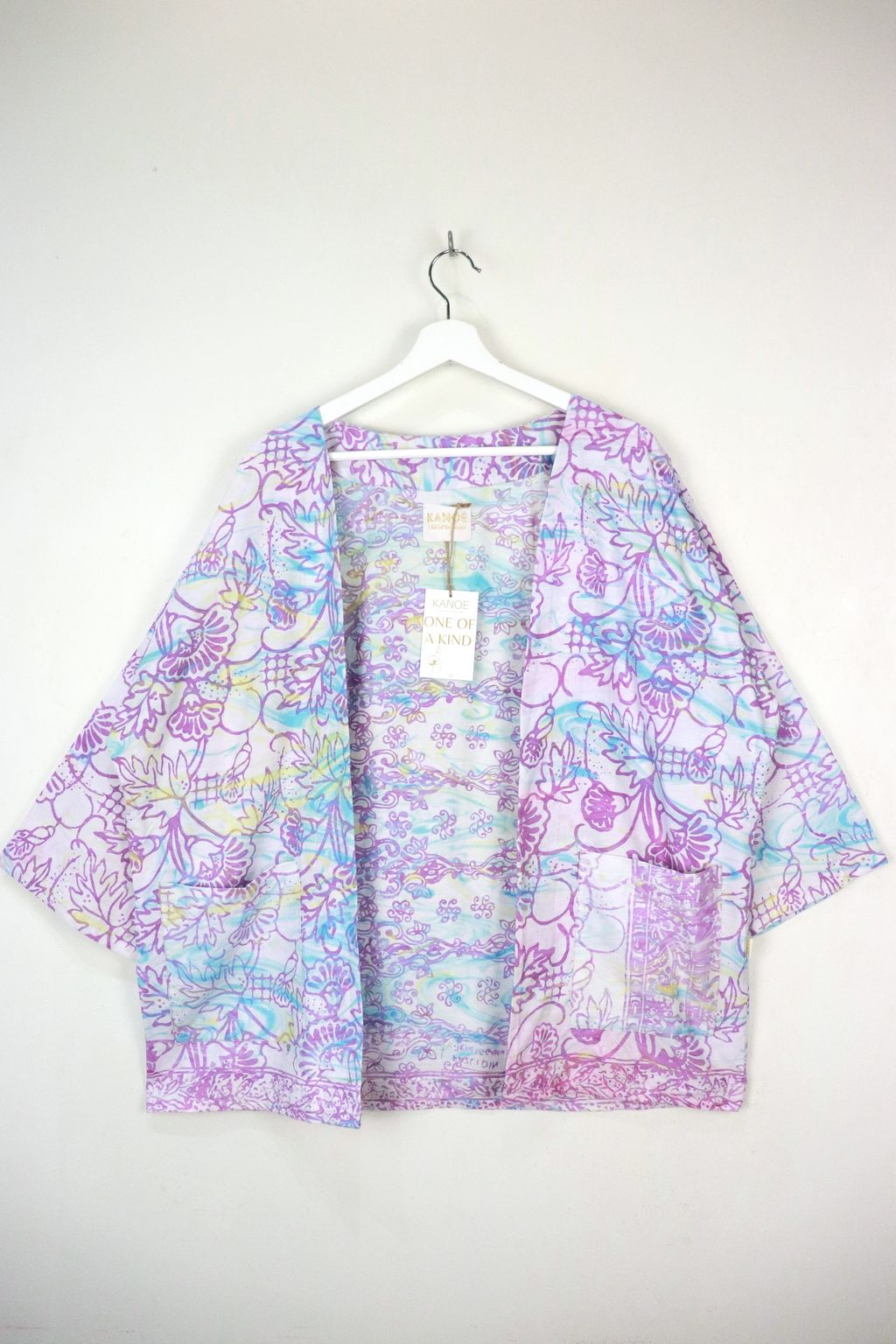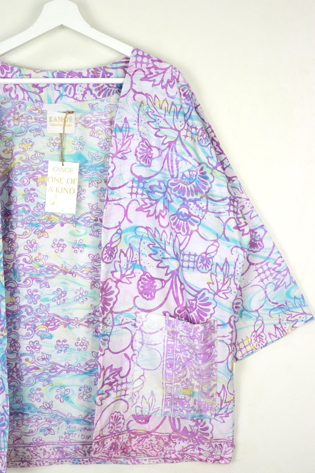 They have pockets in the front, and has a clean straight cut. These pieces are also made with handstamped batik done locally by Malaysian Artisans! A basic kimono batik for your everyday wear!