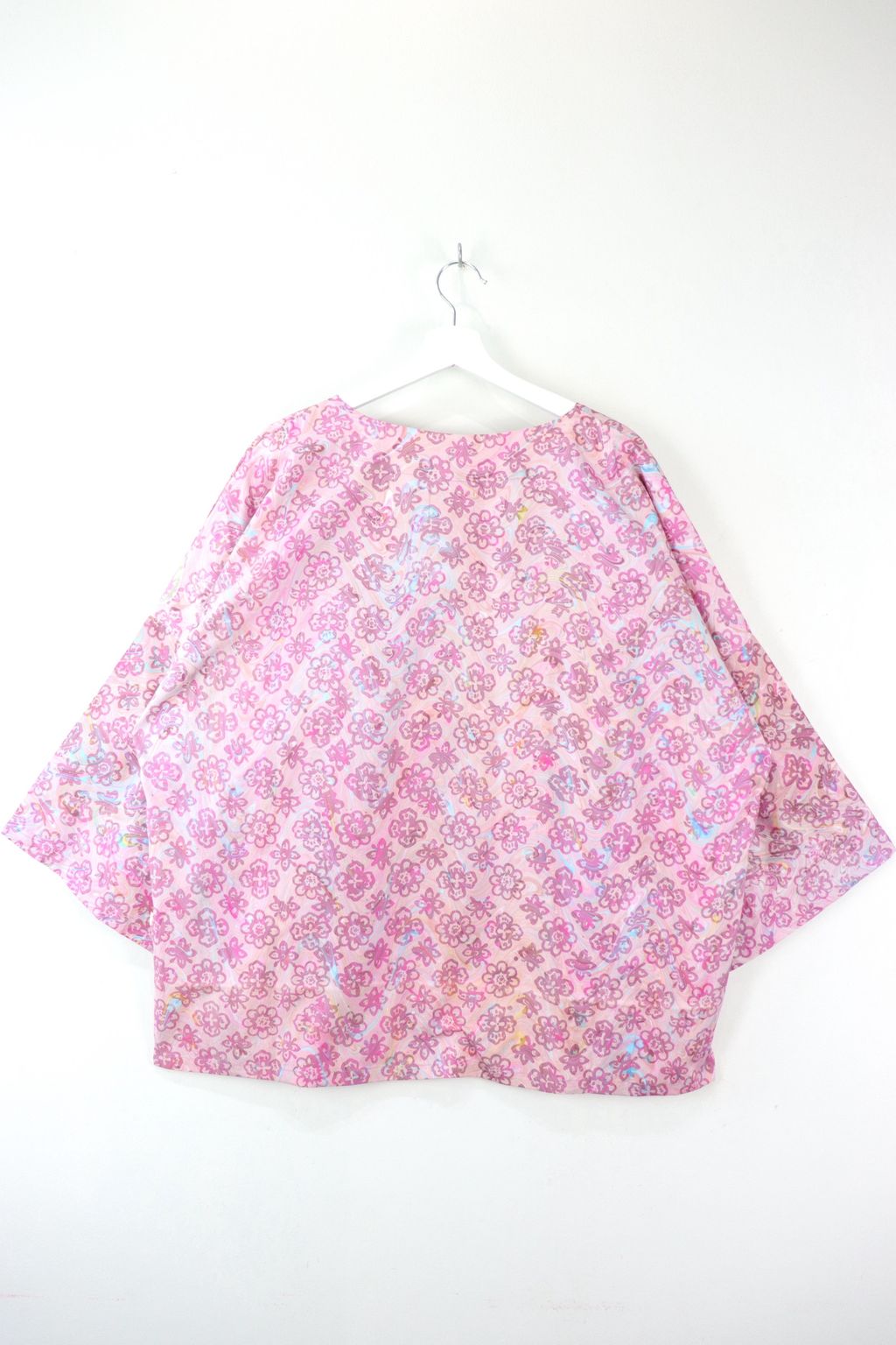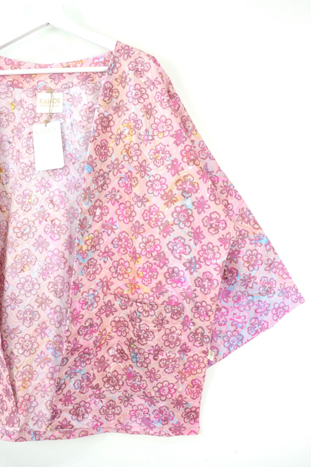 They have pockets in the front, and has a clean straight cut. These pieces are also made with handstamped batik done locally by Malaysian Artisans! A basic kimono batik for your everyday wear!