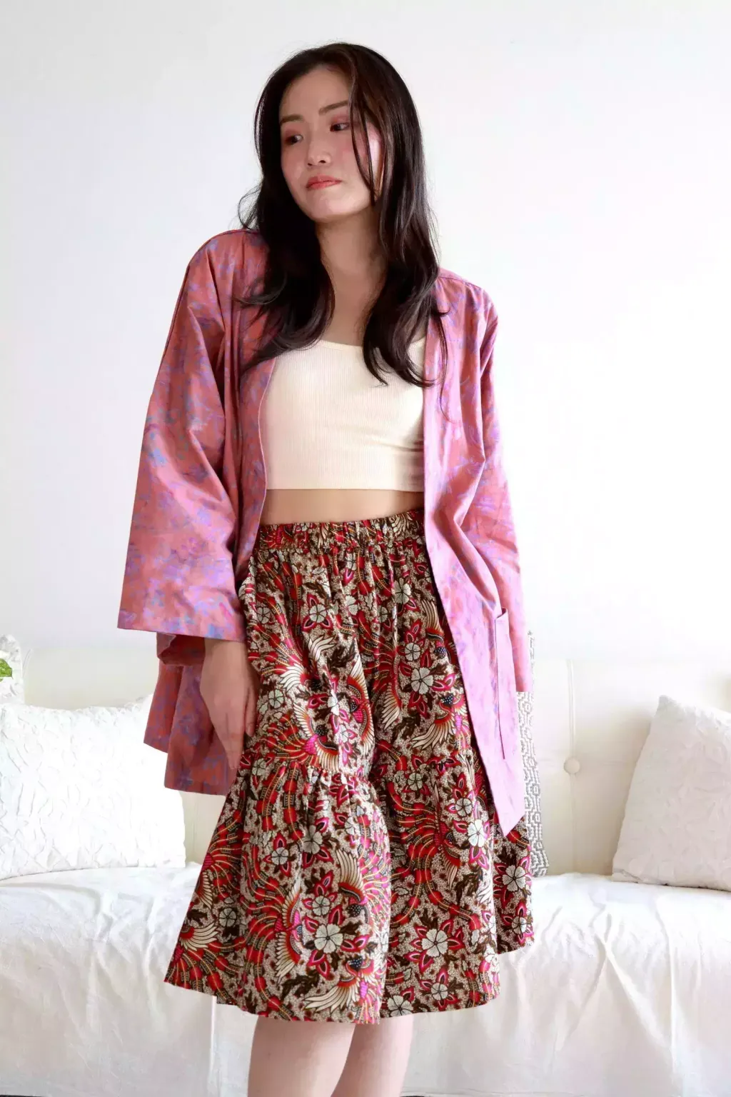 When we are stuck at home wearing a basic spaghetti strap top at home and the door bell rings, throw on this kimono before heading out to collect that parcel. Or if your boss calls you last minute for a zoom call. Throw on this batik kimono!