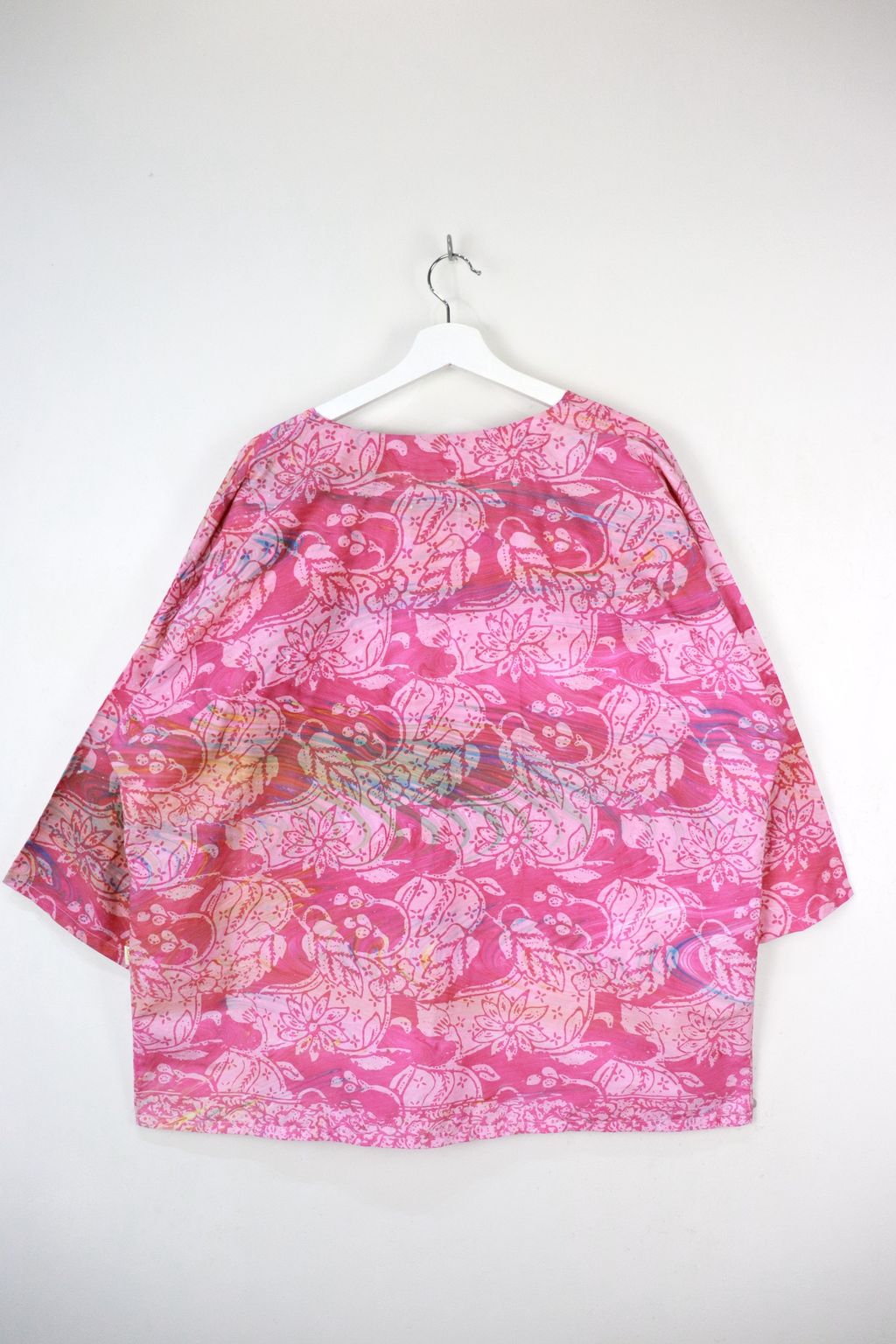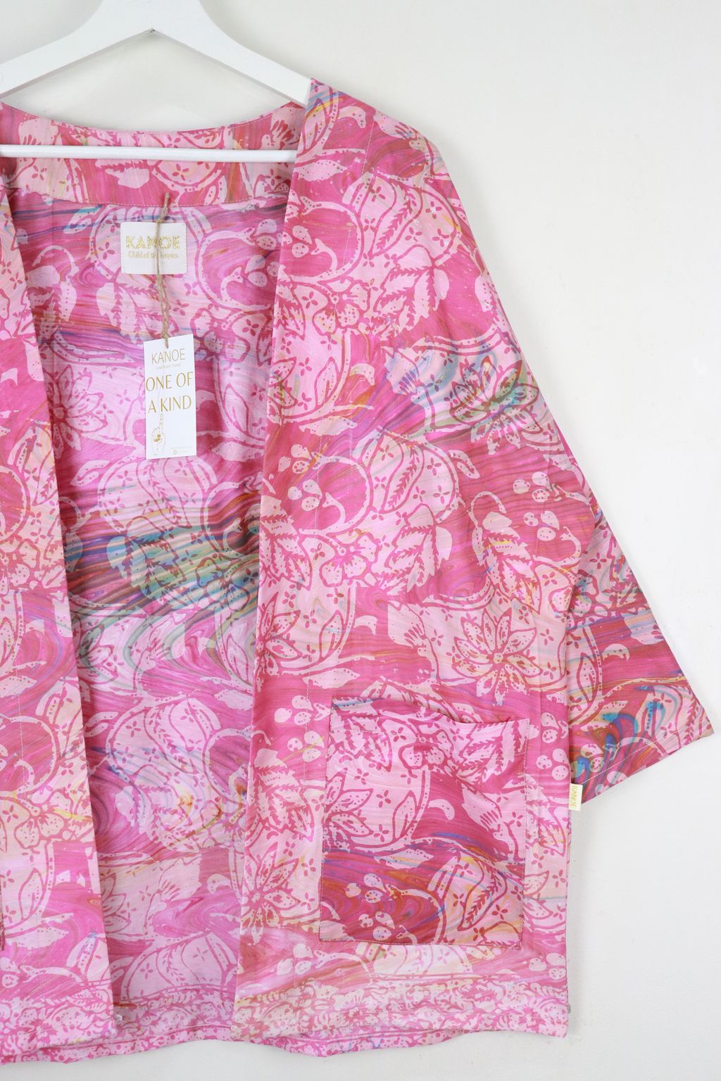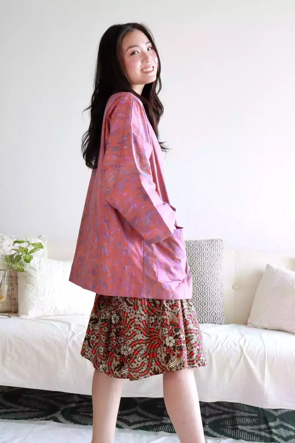 They have pockets in the front, and has a clean straight cut. These pieces are also made with handstamped batik done locally by Malaysian Artisans! A basic kimono batik for your everyday wear!
