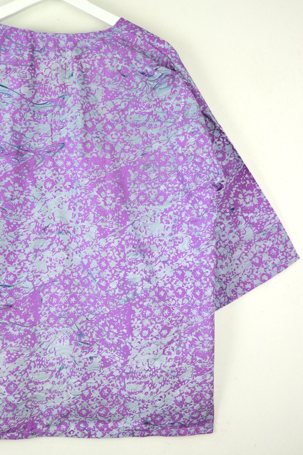 They have pockets in the front, and has a clean straight cut. These pieces are also made with handstamped batik done locally by Malaysian Artisans! A basic kimono batik for your everyday wear!