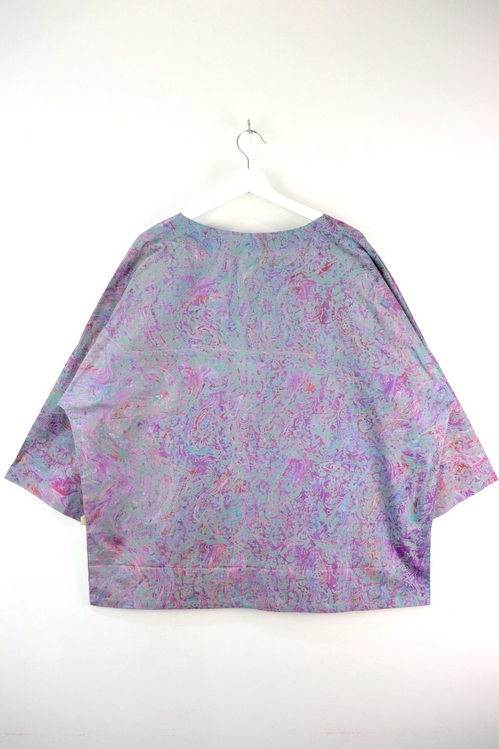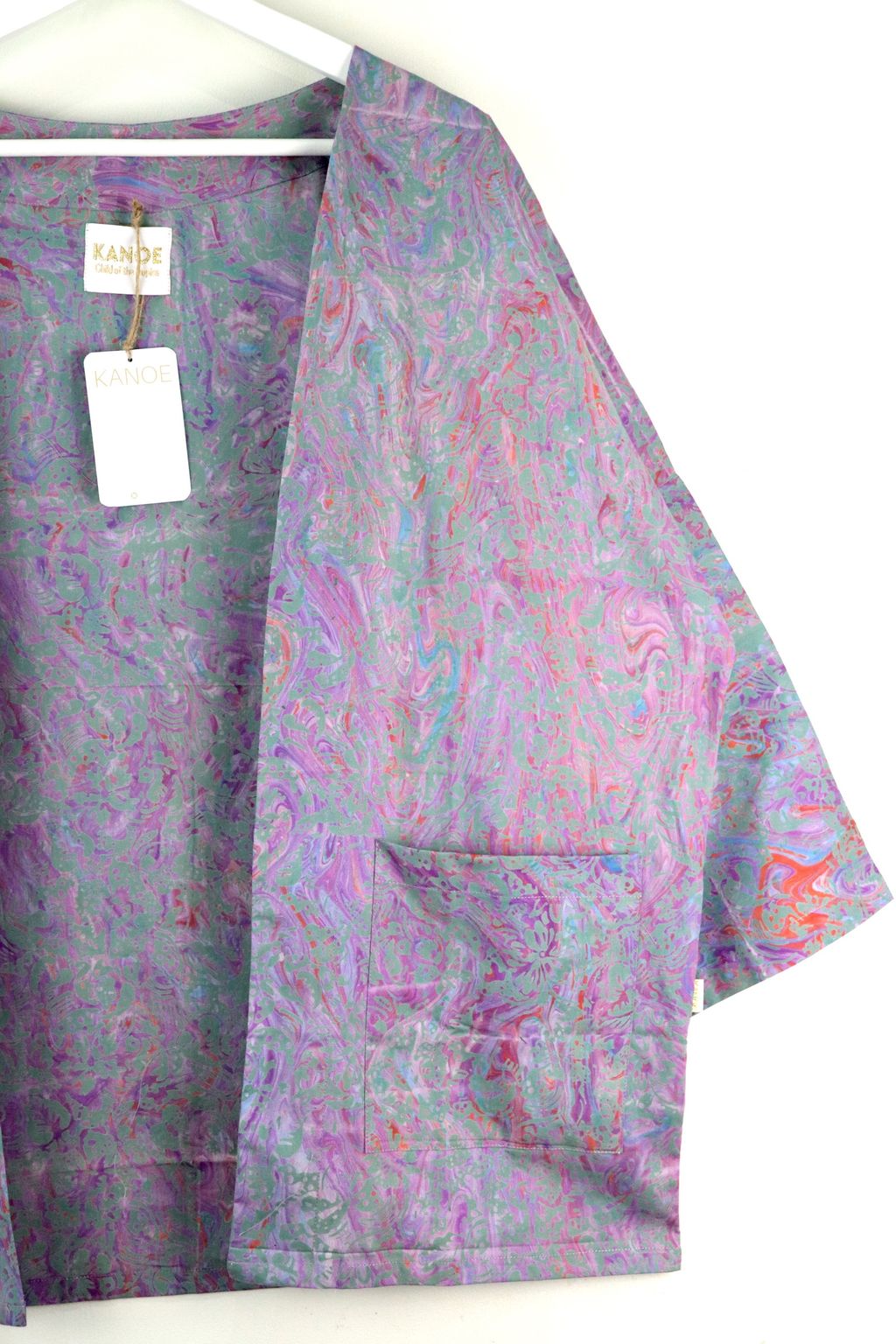 They have pockets in the front, and has a clean straight cut. These pieces are also made with handstamped batik done locally by Malaysian Artisans! A basic kimono batik for your everyday wear!