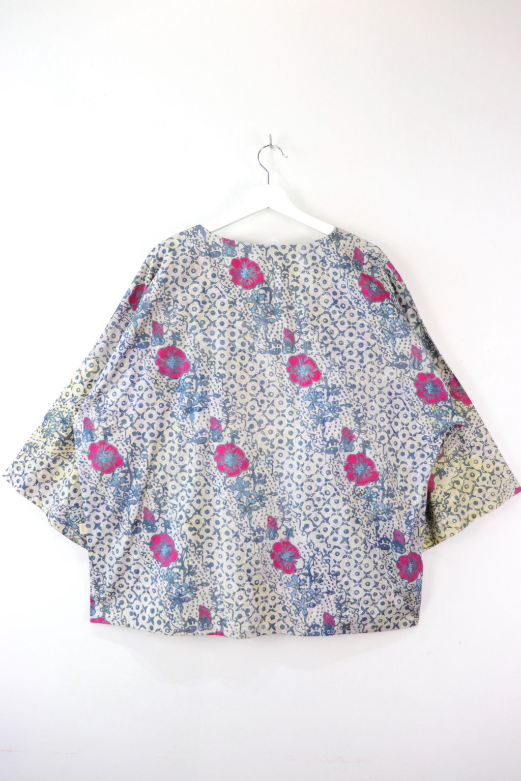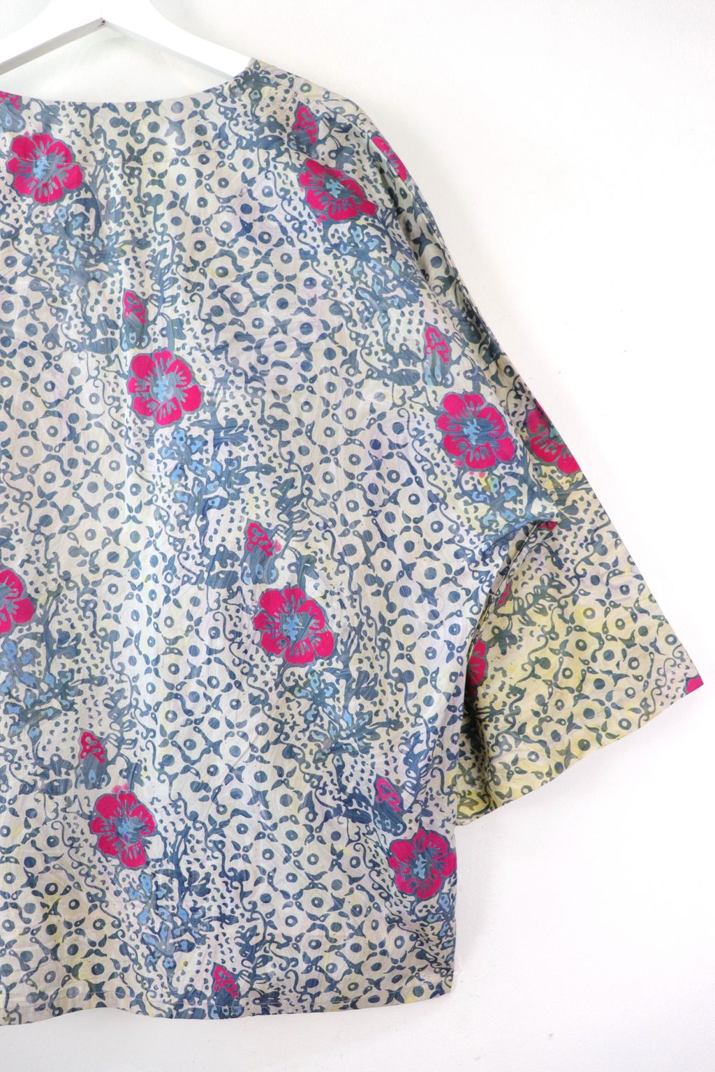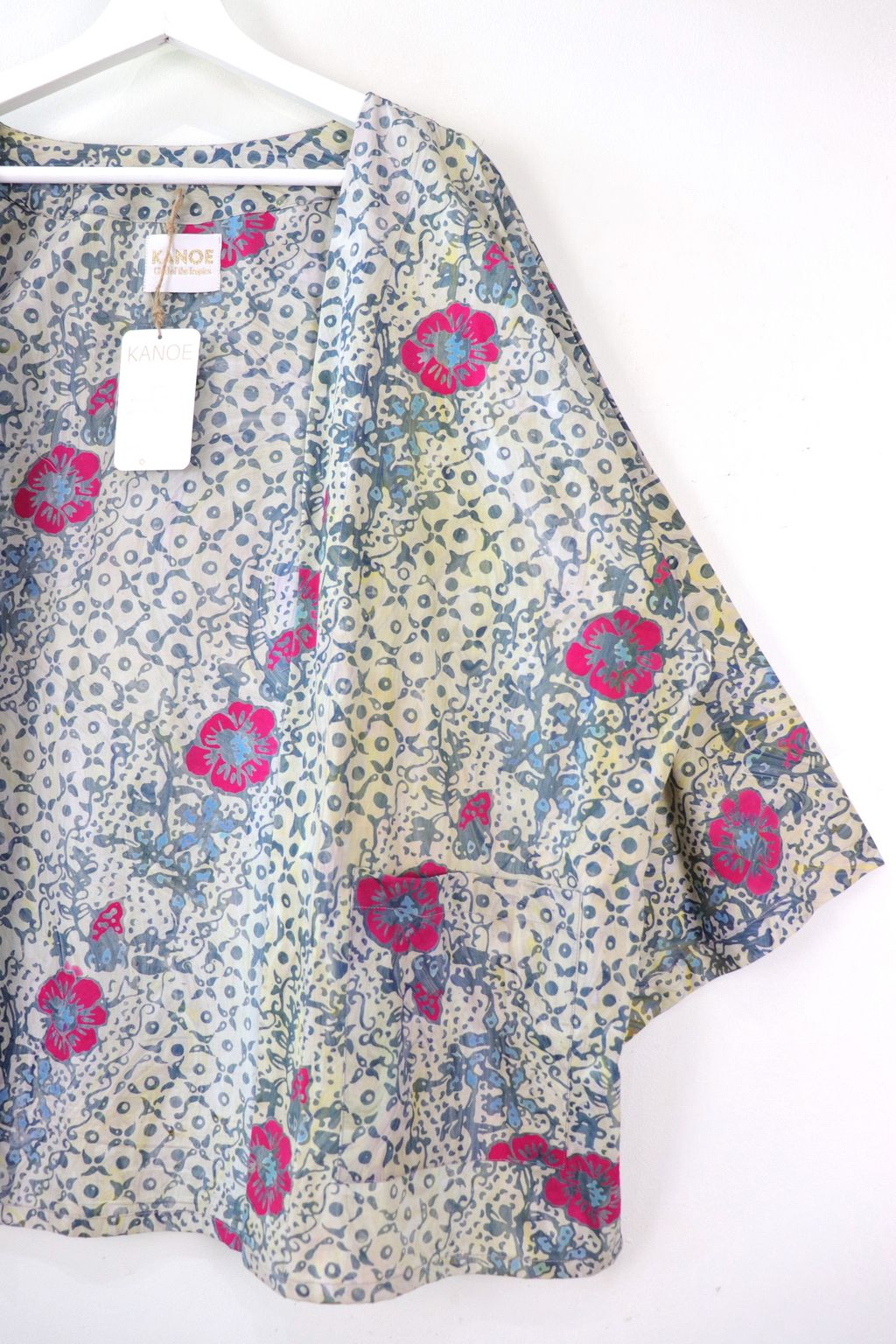 They have pockets in the front, and has a clean straight cut. These pieces are also made with handstamped batik done locally by Malaysian Artisans! A basic kimono batik for your everyday wear!