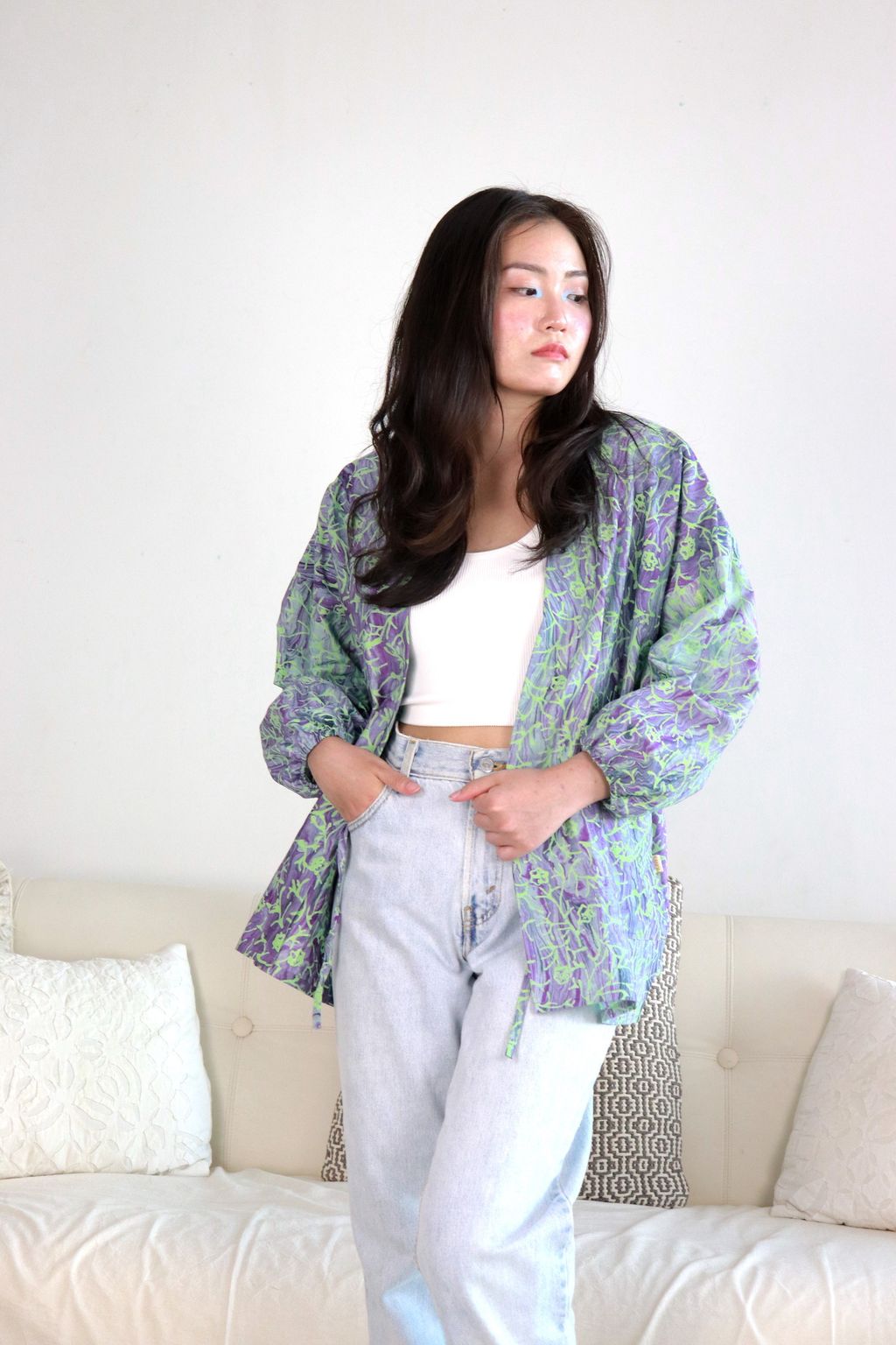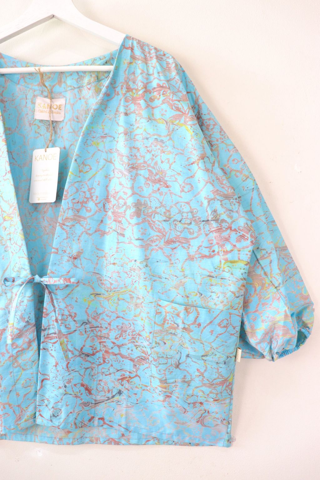 When we are stuck at home wearing a basic spaghetti strap top at home and the door bell rings, throw on this kimono before heading out to collect that parcel hehe. Or if your boss calls you last minute for a zoom call. Throw on this batik kimono :p