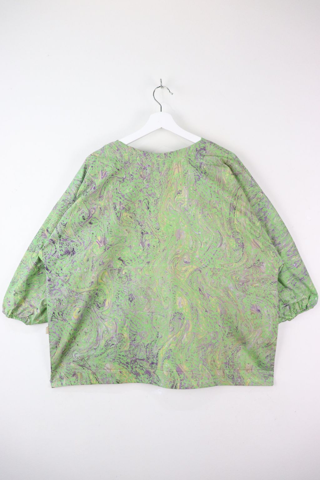 They have pockets in the front, as well a curved sleeve with elastic at the end of the sleeve which gives from for comfort of ease of movement as well a handy place for you to keep items when your hands are full! These pieces are also made with handstamped batik done locally by Malaysian Artisans!