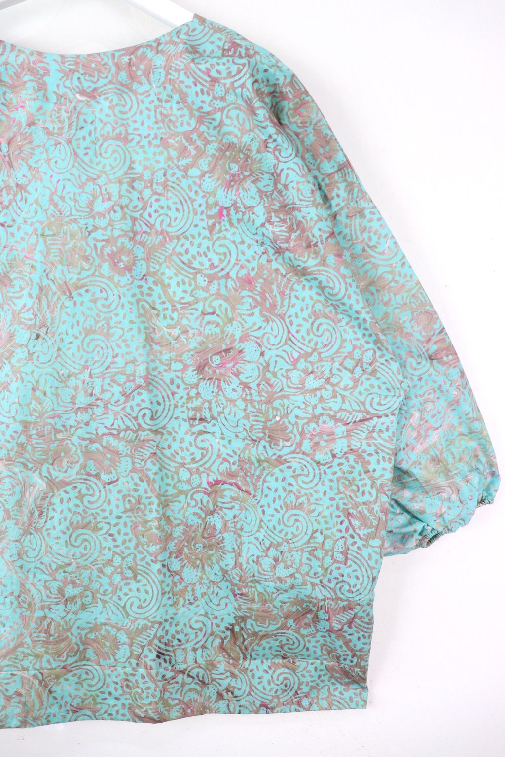 They have pockets in the front, as well a curved sleeve with elastic at the end of the sleeve which gives from for comfort of ease of movement as well a handy place for you to keep items when your hands are full! These pieces are also made with handstamped batik done locally by Malaysian Artisans!