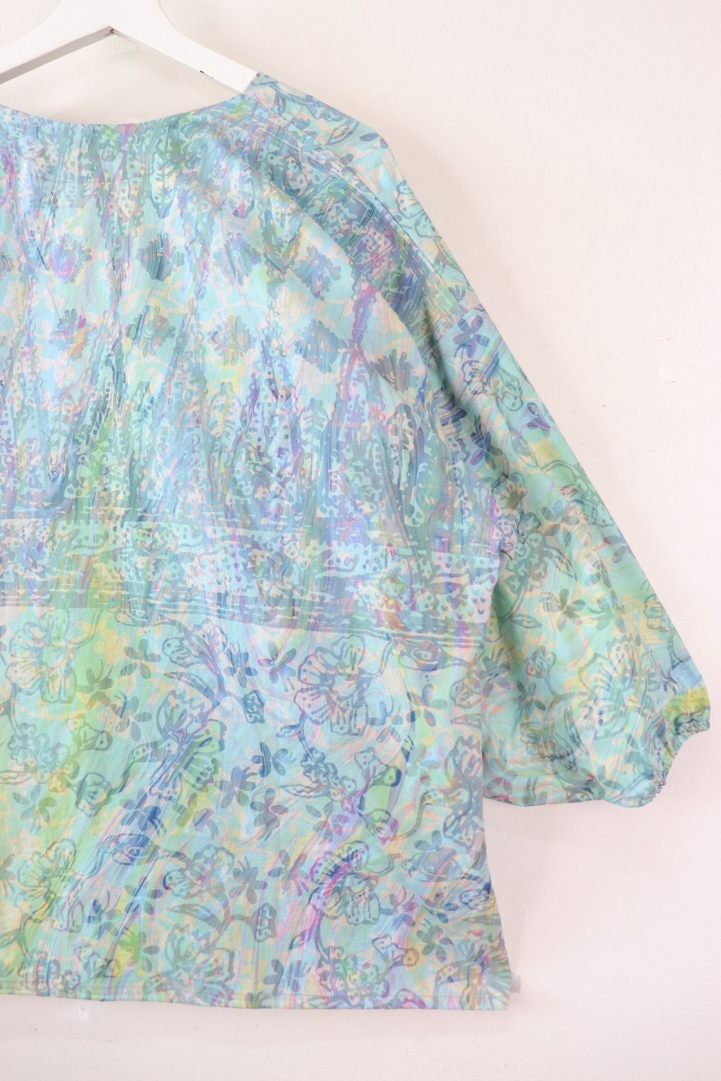 They have pockets in the front, as well a curved sleeve with elastic at the end of the sleeve which gives from for comfort of ease of movement as well a handy place for you to keep items when your hands are full! These pieces are also made with handstamped batik done locally by Malaysian Artisans!