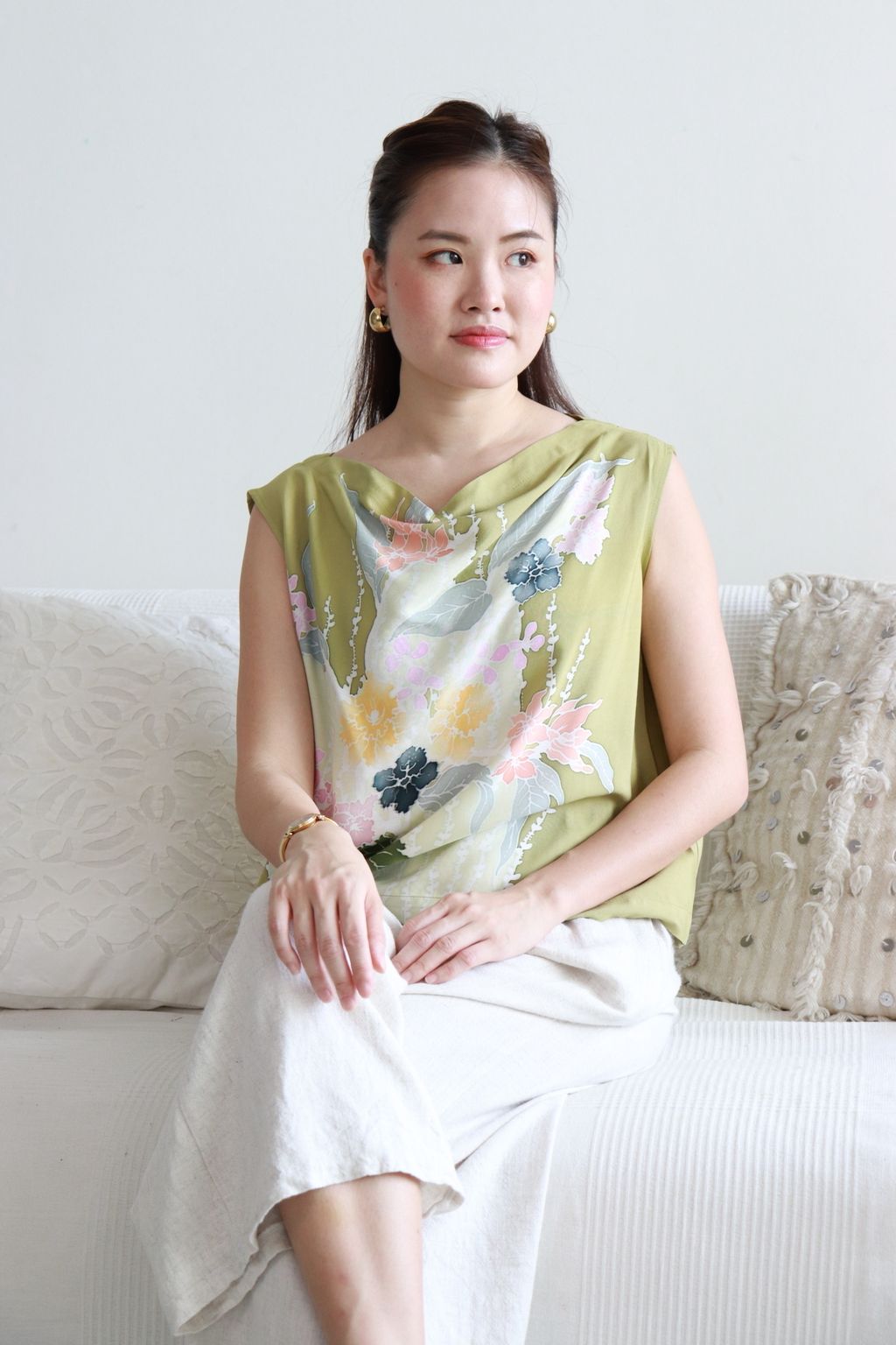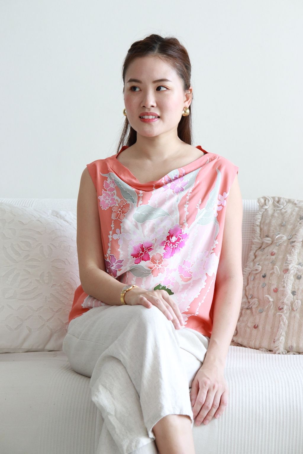 Made into these elegant cowl tops. Silky to touch.