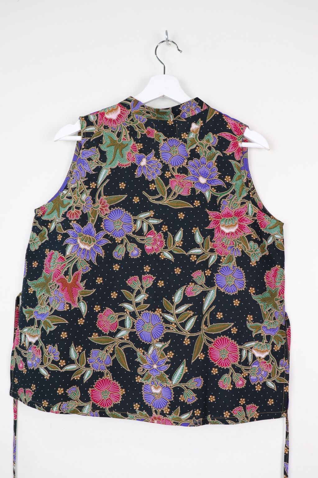 Made of 100% cotton batik. This top has a flattering oriental neckline.