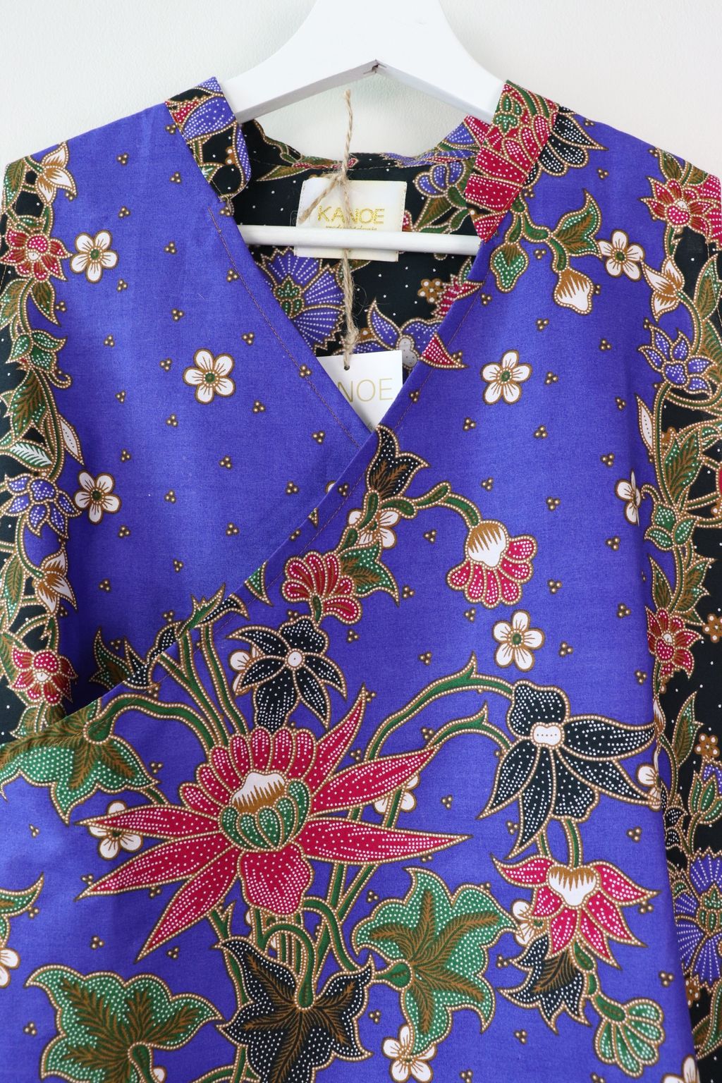 Made of 100% cotton batik. This top has a flattering oriental neckline.