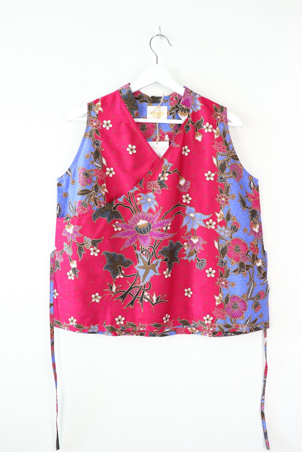 Made of 100% cotton batik. This top has a flattering oriental neckline.