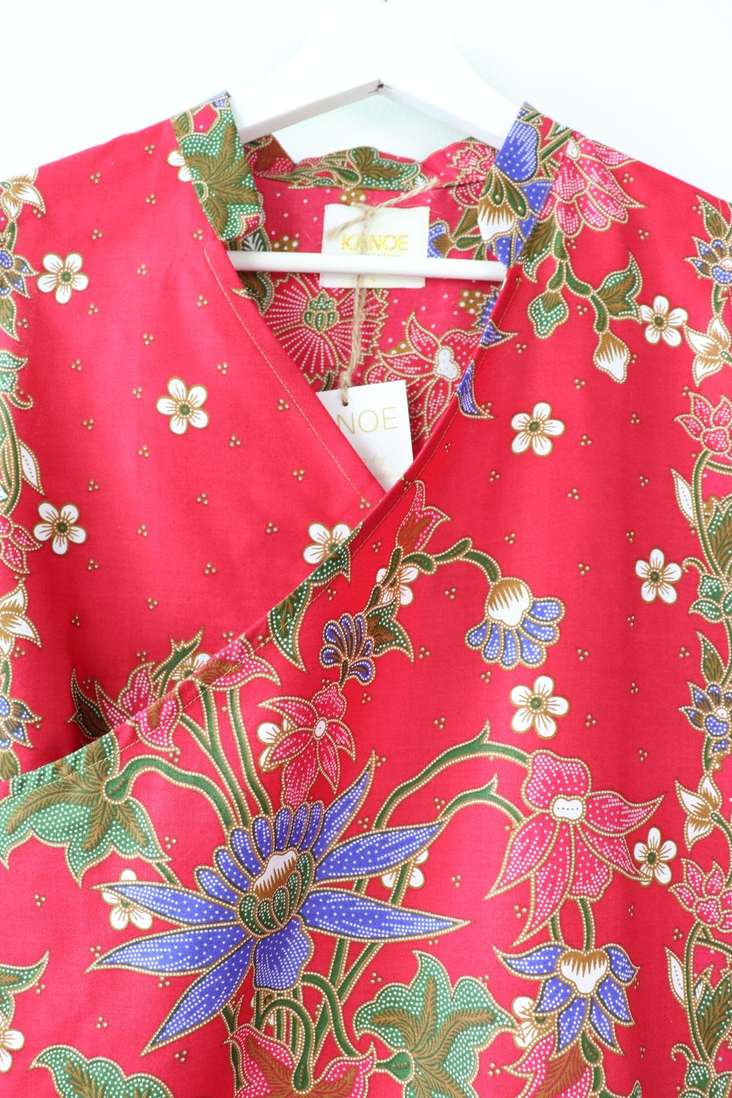 Made of 100% cotton batik. This top has a flattering oriental neckline.