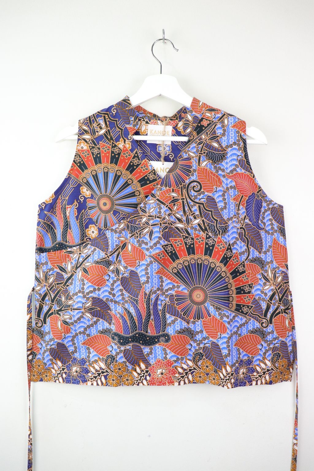 Made of 100% cotton batik. This top has a flattering oriental neckline.