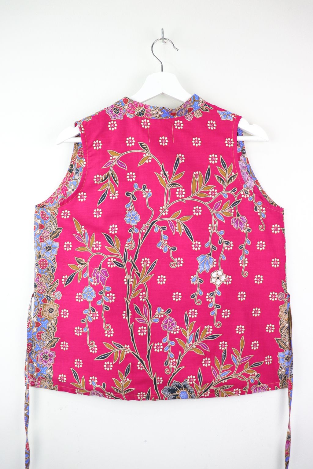 Made of 100% cotton batik. This top has a flattering oriental neckline.