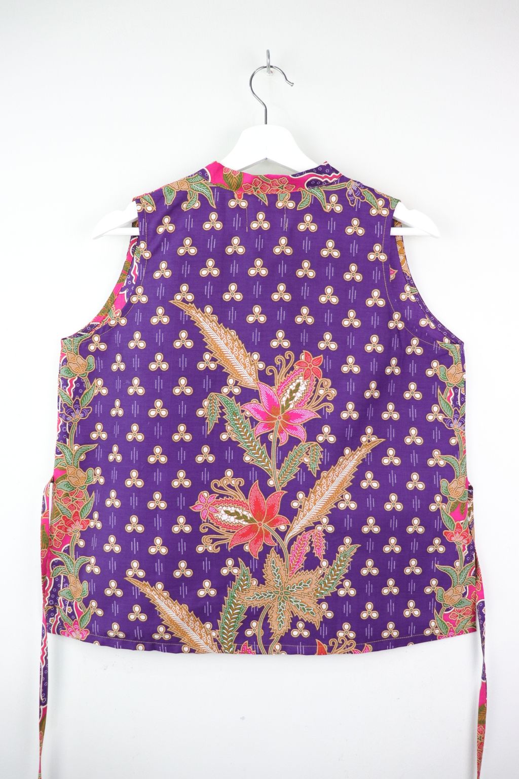 Made of 100% cotton batik. This top has a flattering oriental neckline.
